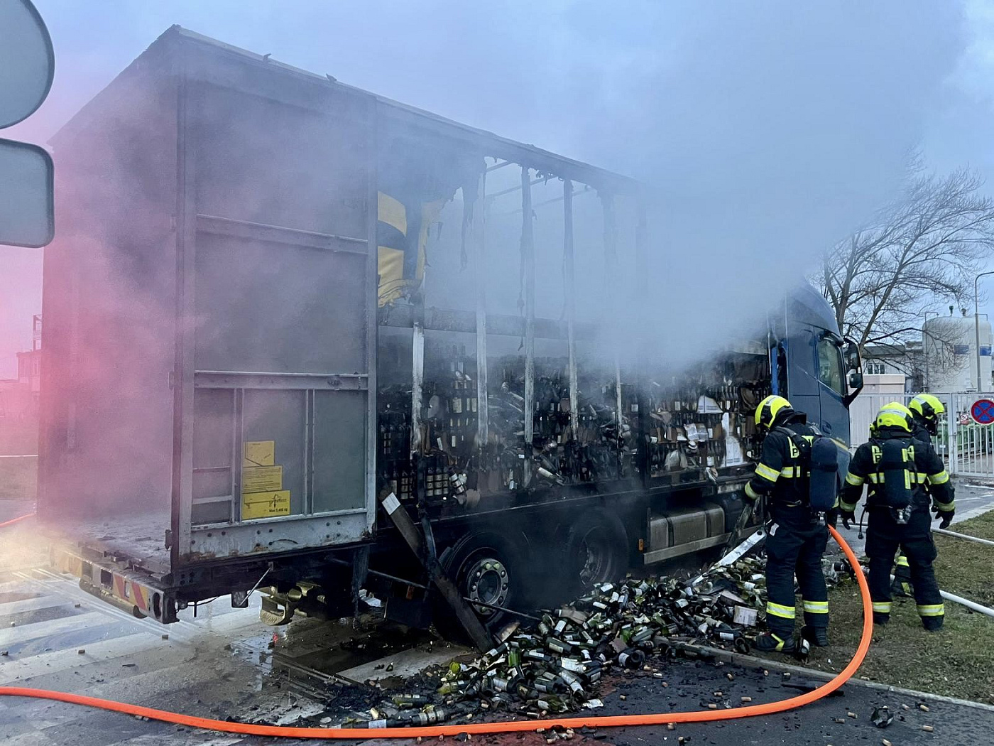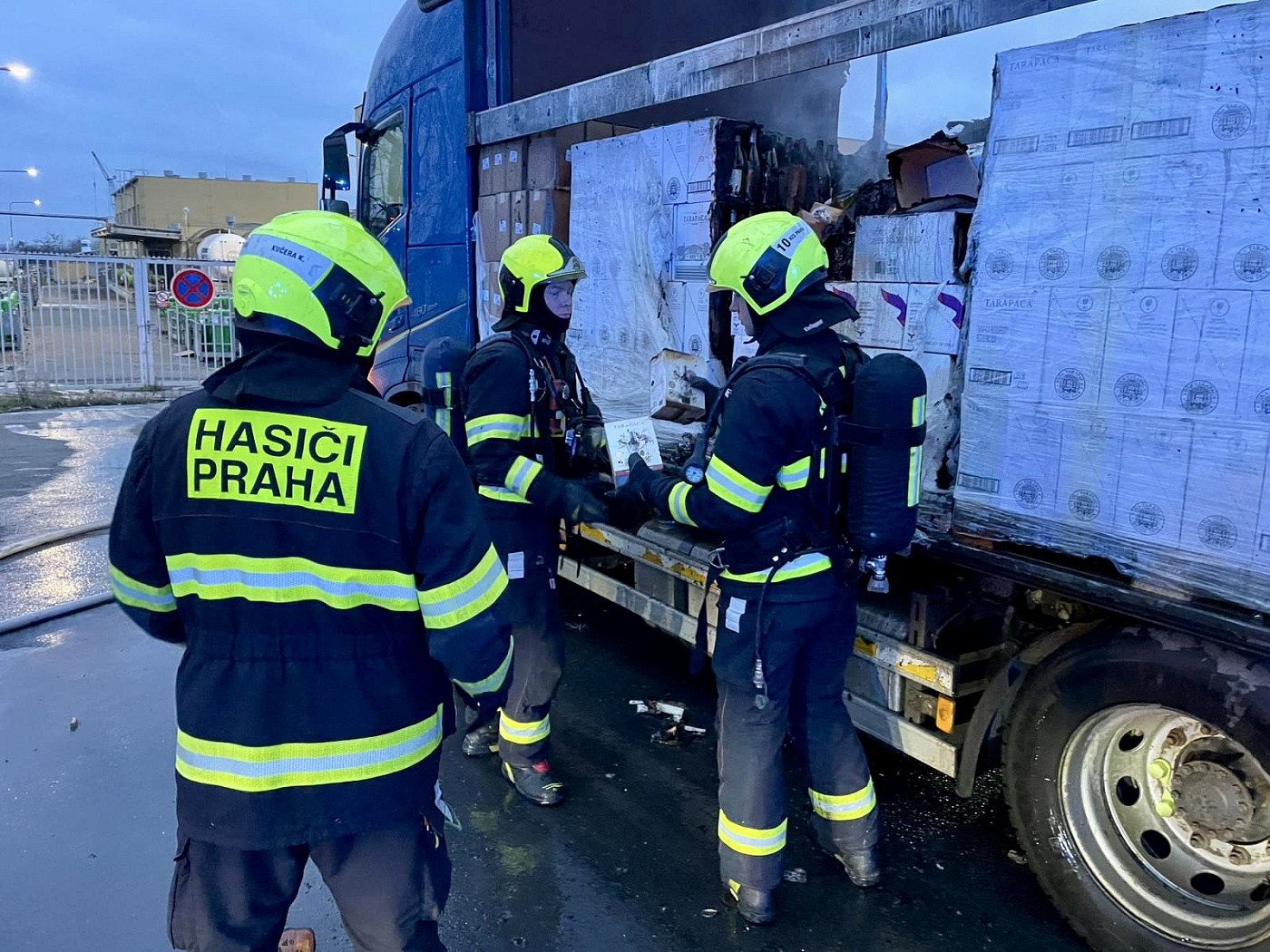 Profesionální hasiči HZS hl. města Prahy ze stanice HS10 Satalice zasahují společně s jednotkou Hasičského záchranného sboru Dopravního podniku hl. m. Prahy v Průmyslové ulici u požáru nákladního vozidla. Na likvidaci požáru hasiči nasadili dva C proudy.