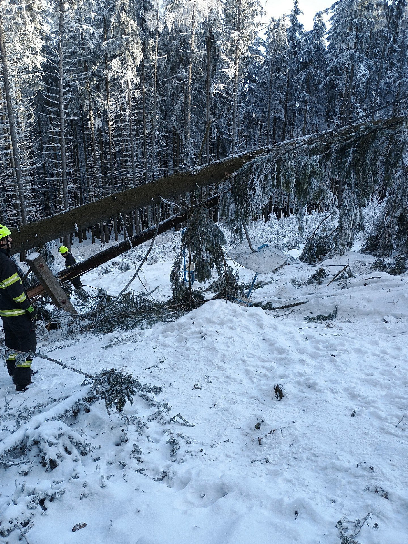 Dnes po poledni zasahovala profesionální jednotka ze stanice Křemže u nahlášeného stromu, který se při pádu opřel o dráty lanovky na Kleti. Lanovka byla při oznámení ještě mimo provoz a nenacházely se tam tudíž žádné osoby. Strom hasiči bezpečně odstranili.