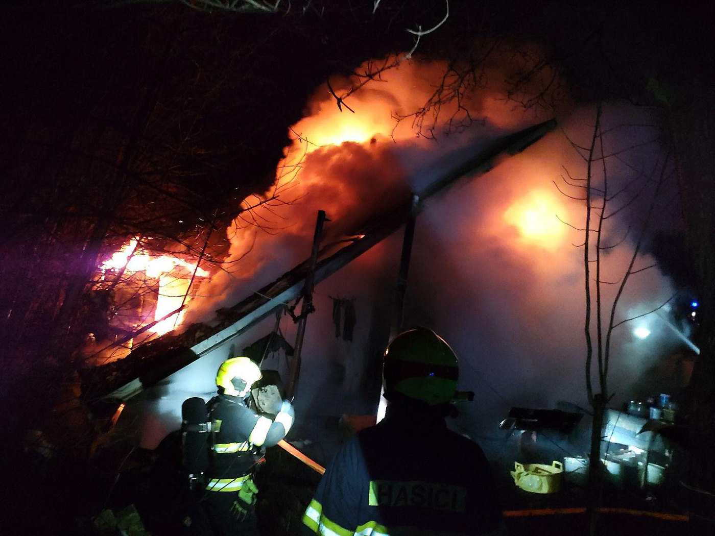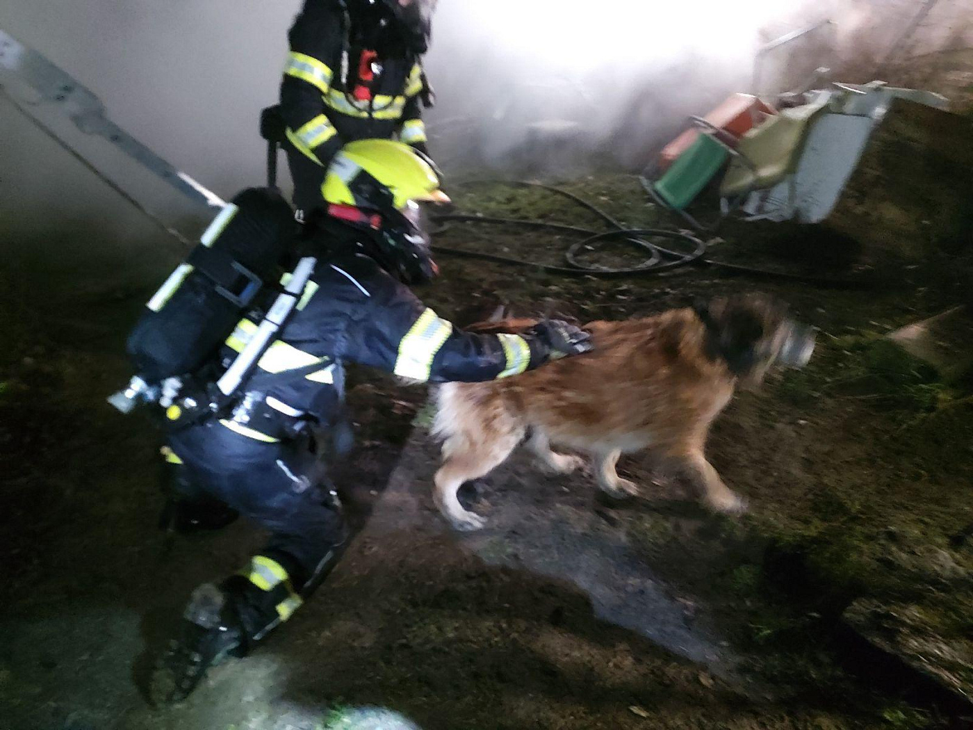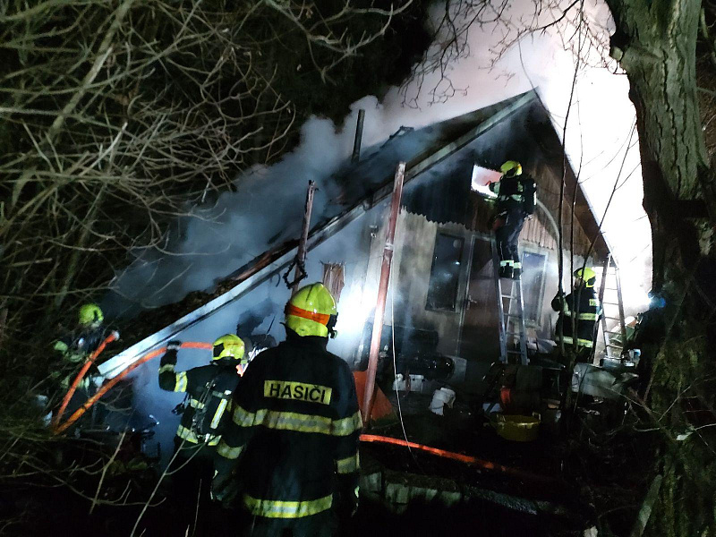 Při nočním požáru chaty v Chrudimi hasiči zachránili psa