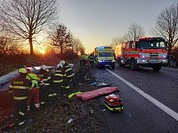 Při vážné dopravní nehodě tří vozidel u obce Úlibice se zranilo osm osob, jednu museli hasiči vyprostit