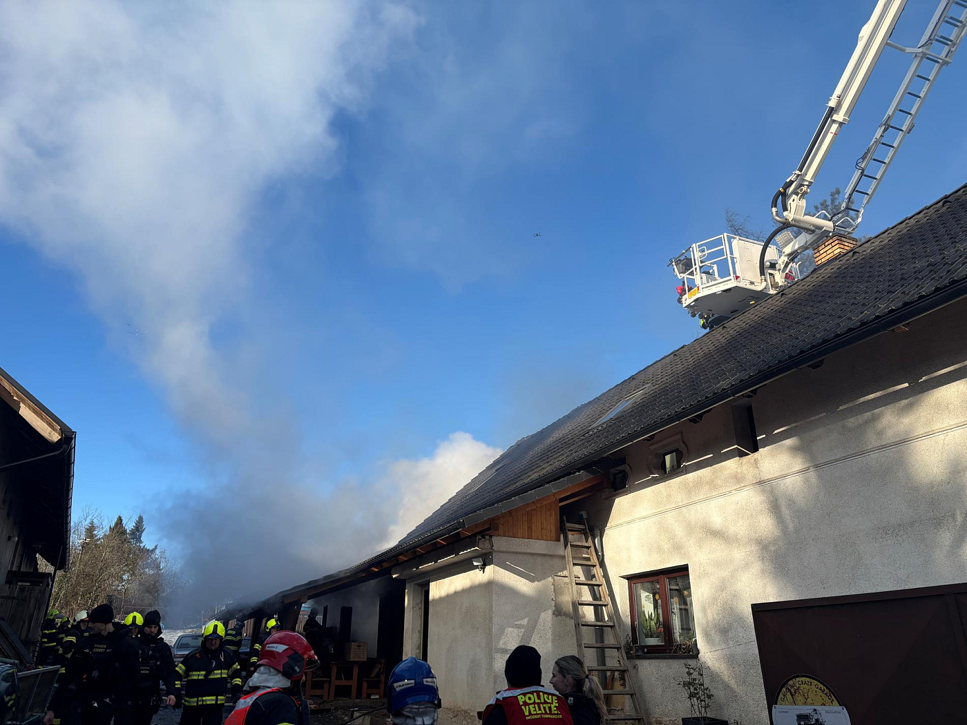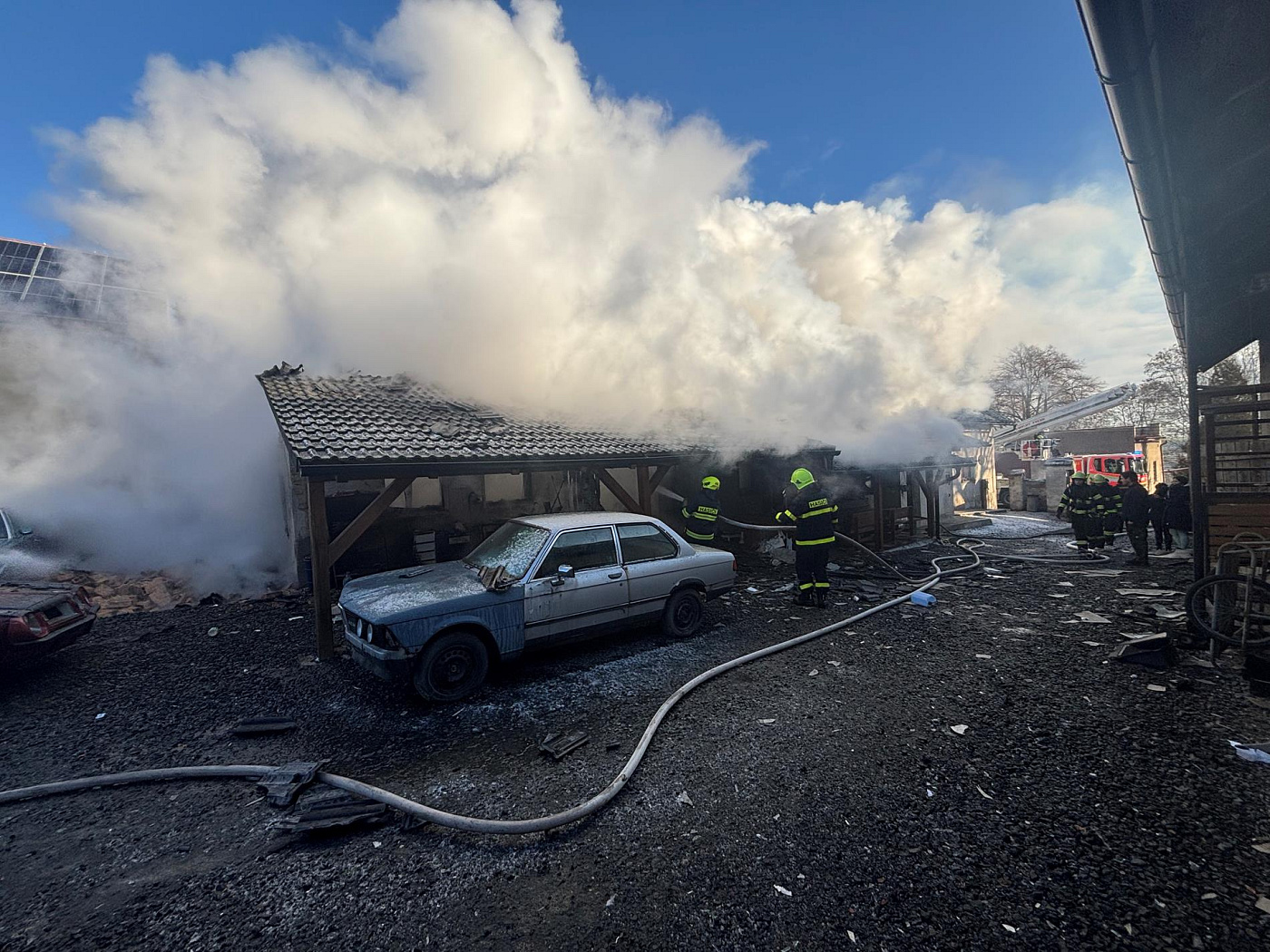 Druhý stupeň poplachu u požáru dílny v Krpech, požár se šířil na přilehlý dům