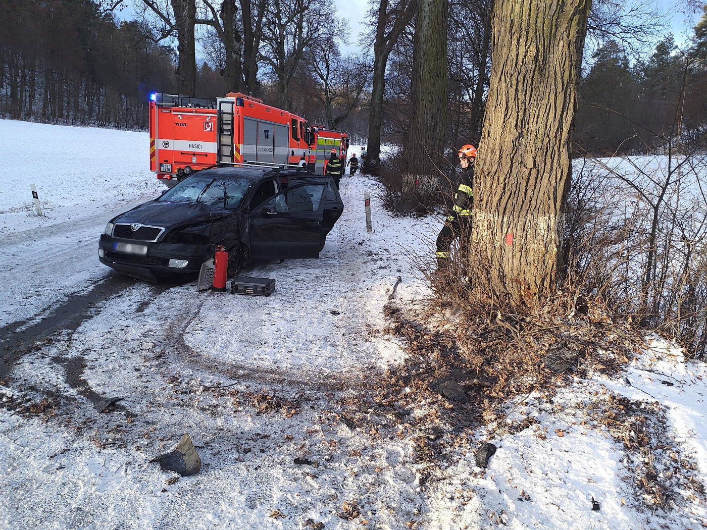 Před půl devátou vyjela profesionální jednotka ze stanice Blansko a dobrovolná jednotka z Jedovnic k dopravní nehodě osobního automobilu nedaleko obce Rudice. Při střetu vozidla se stromem se zranila řidička.