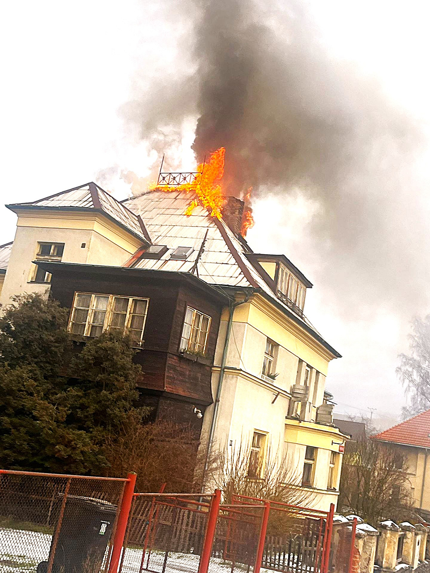 Požár střechy domu v Benešově nad Ploučnicí způsobil prasklý komín
