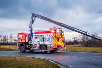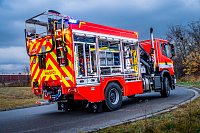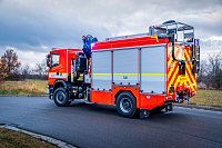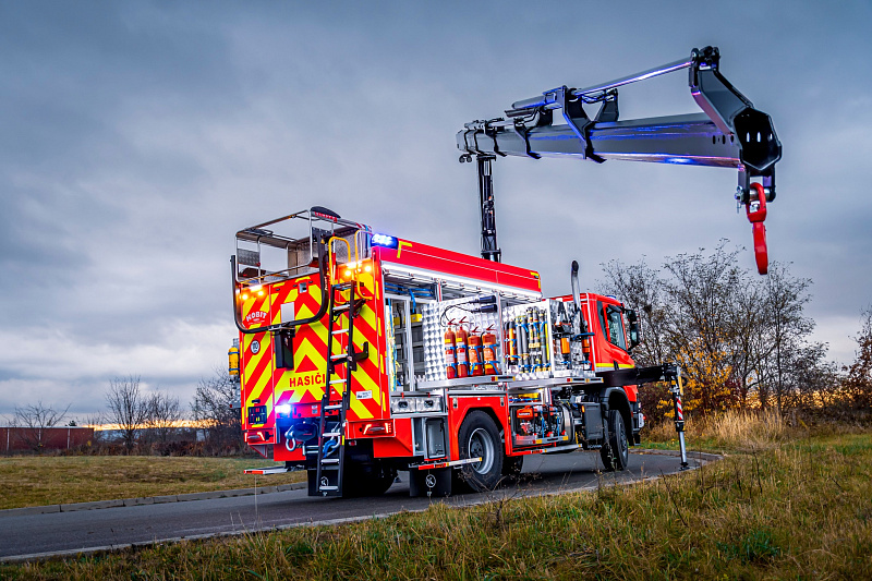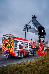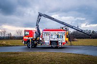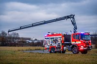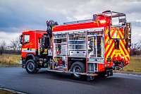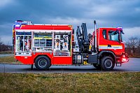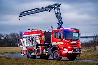 Dva navijáky, hydraulický nakládací jeřáb s košem pro dvě osoby a Scania od KOBIT-THZ, představujeme nový technický automobil HZS Pardubického kraje