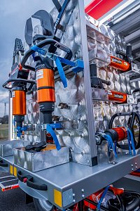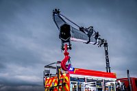 Otáčení v rozsahu 416 ° dává posádce velkou volnost i ve stísněných prostorech. Pro zásahy ve výšce je připraven pracovní koš pro dvě osoby.