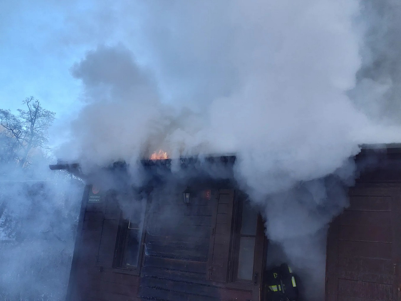 Profesionální hasiči ze stanic Lidická a Ivančice zasahují společně s jednotkami SDH obcí Nová Ves, Senorady a Oslavany v katastru obce Senorady u požáru chaty.