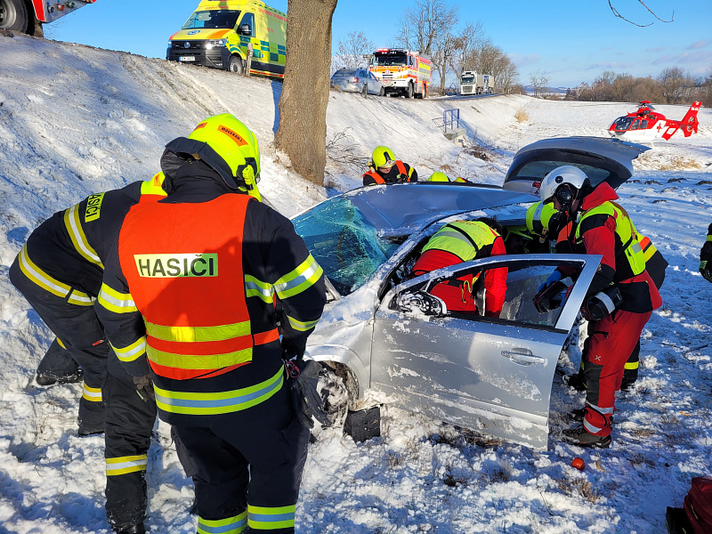 Při nehodě osobního vozu na Bruntálsku museli hasiči vyprostit řidiče