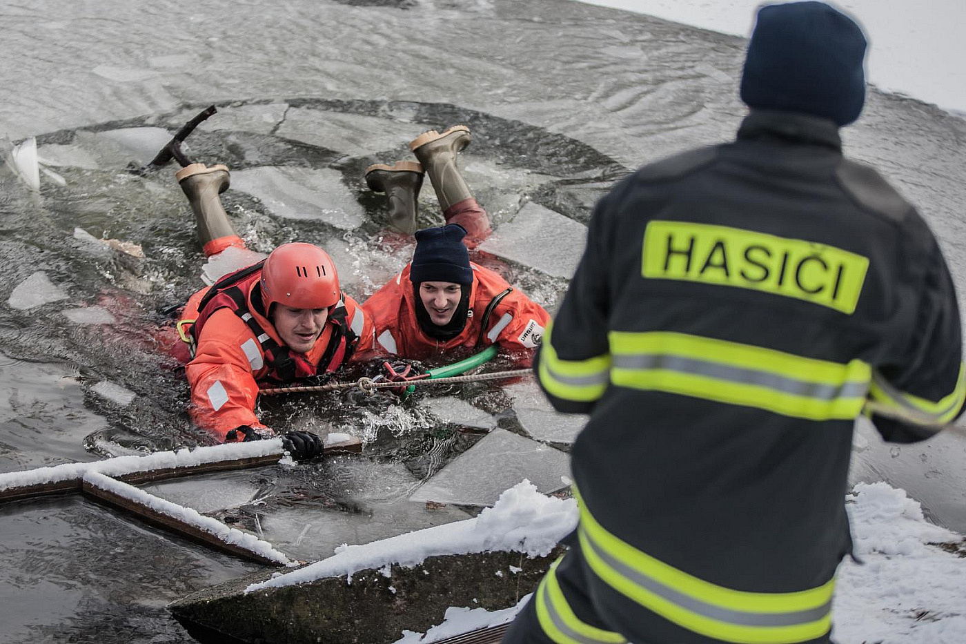 Pokud se rozhodnete zkusit pomoci sami, nevstupujte na led vzpřímeně. Ideálně se plazte po břiše nebo pližte, aby se vaše váha rozložila. K vytažení člověka můžete použít větev, hokejku, prkno, lano, zkrátka cokoli, čím se dá dosáhnout k postiženému z bezpečné vzdálenosti.