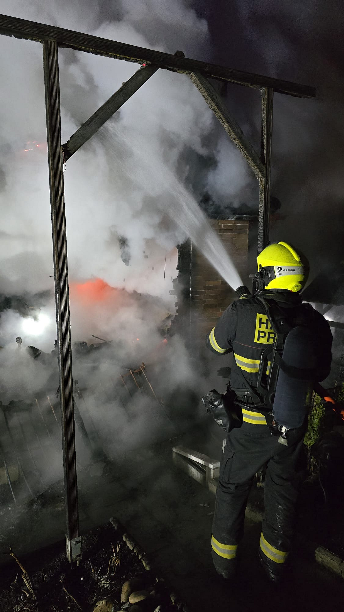 Pražští hasiči zasahují ve Stodůlkách v ulici Ke Konstruktivě, hoří tam chata. Jde o požár v plném rozsahu. HZS Praha Sdílet