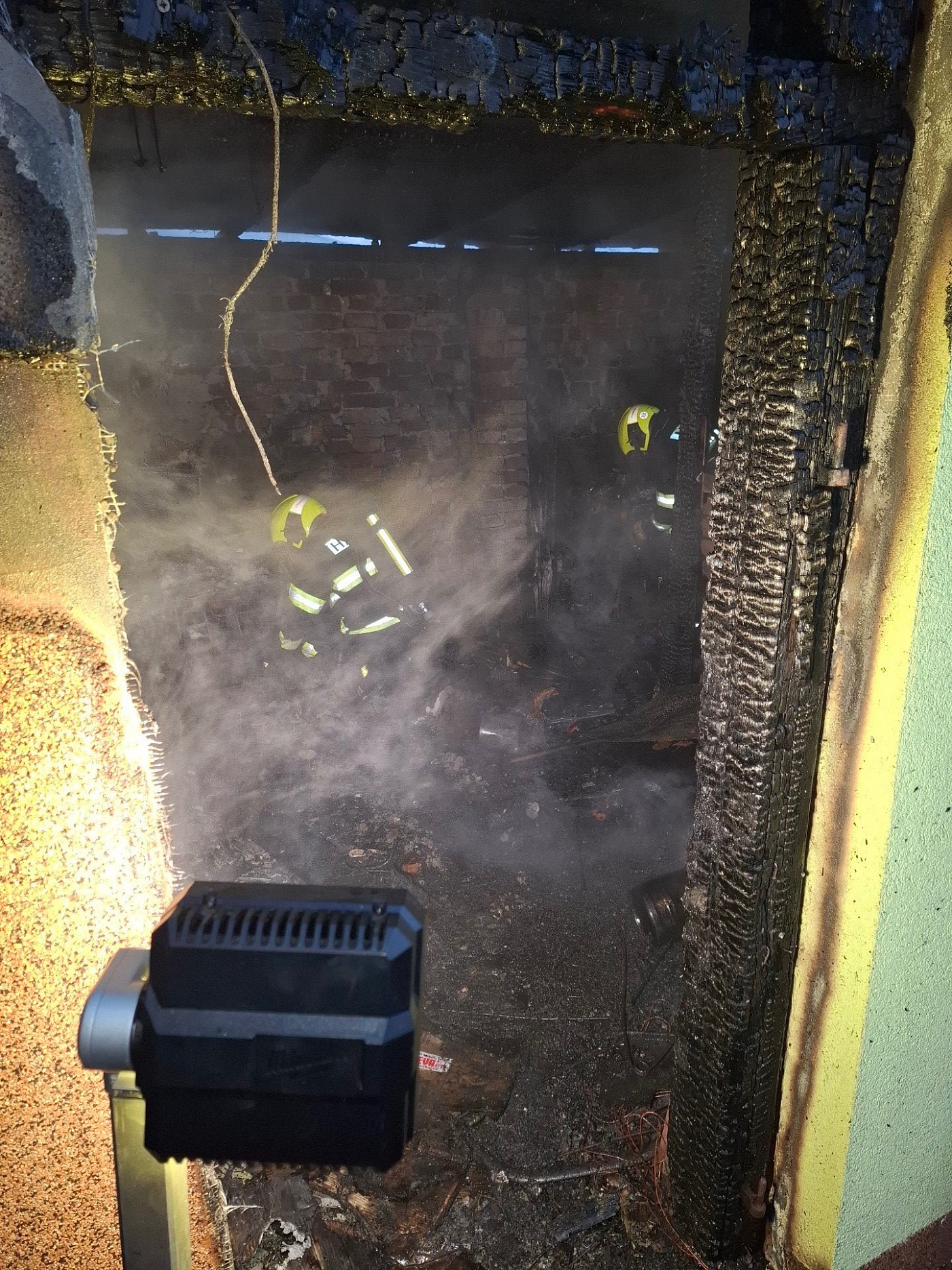 Hasiči vynáší množství ohořelého materiálu. Uvnitř hořícího objektu se nacházelo také větší množství propan-butanových lahví. Obyvatelé opustili budovu před příjezdem jednotek, nikdo nebyl zraněn. Škoda přesáhne předběžně víc než milion korun. Příčinu zjišťuje na místě vyšetřovatel.