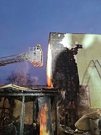U požáru přístavby rodinného domu zasahují hasiči v Mladějovicích na Olomoucku. Plameny dostaly pod kontrolu čtyři jednotky, s využitím výškové techniky teď vyhledávají skrytá ohniska a dohašují. Díky včasnému zásahu hasiči zabránili rozšíření požáru na přilehlé obytné části domu.