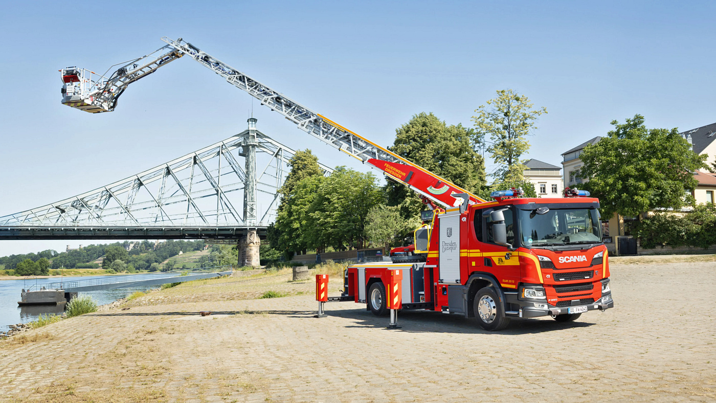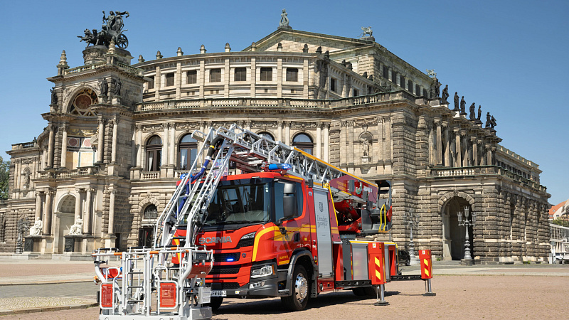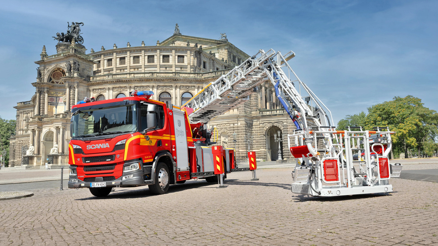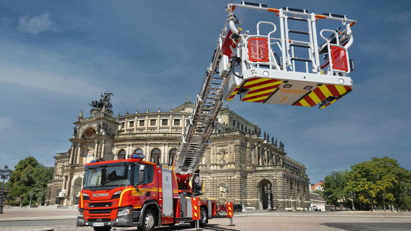 Hasičský sbor saské metropole Drážďany modernizuje svou flotilu výškové techniky. Od společnosti Rosenbauer převzali hasiči nový automobilový žebřík DLA-K 23/12. Technika na podvozku Scania představuje špičku v oboru, zejména díky své konstrukci se zalamovacím ramenem.
