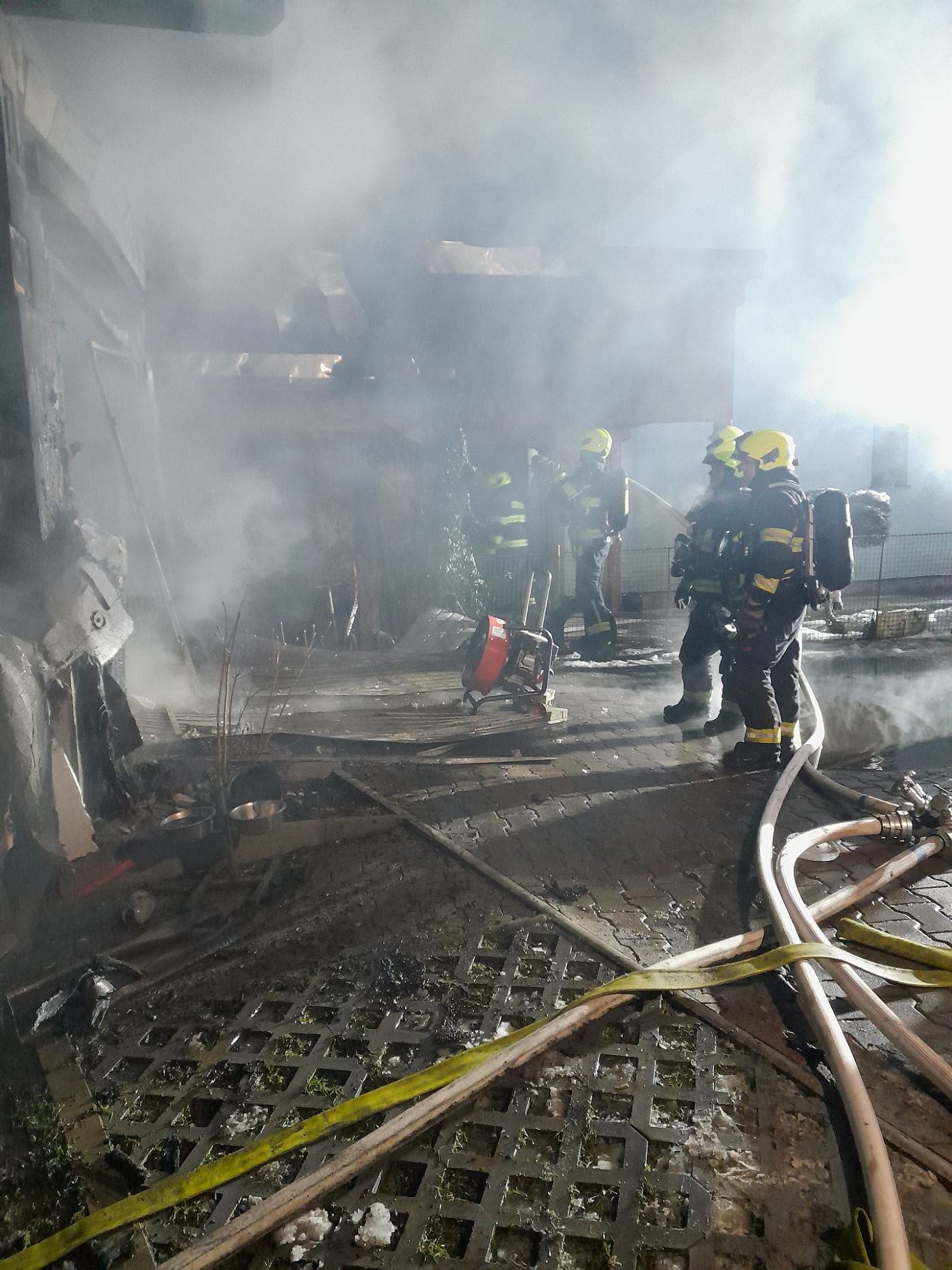 Zasahující hasiči likvidovali plameny pomocí dvou proudů C, požár velmi rychle lokalizovali (během necelé čtvrt hodiny, ve 21:20). Třetí proud nasadili, aby ochránili před plameny vedlejší objekt, což se jim také podařilo. Poté prováděli dohašování, rozebírání konstrukcí, vyhledávání skrytých ohnisek a jejich dohašování. Na odvětrání objektu použili přetlakovou ventilaci.