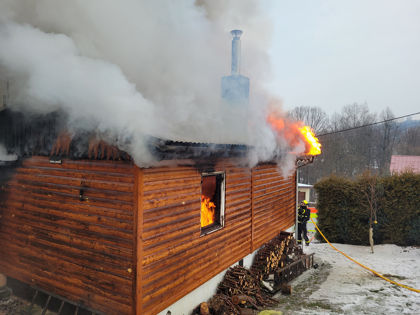 Zásah čtyř jednotek hasičů si vyžádal požár rekreační chaty v chatové oblasti u Těrlické přehrady. Událost se obešla bez zranění.