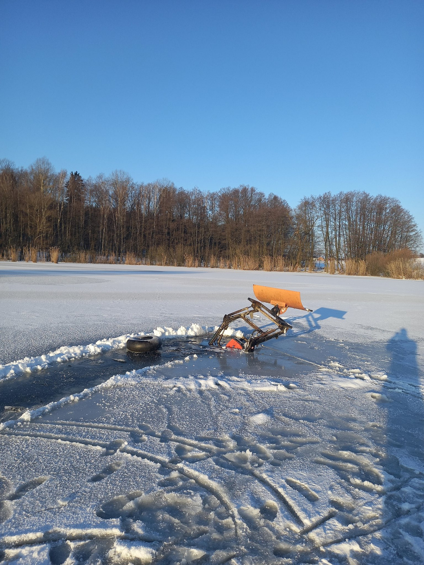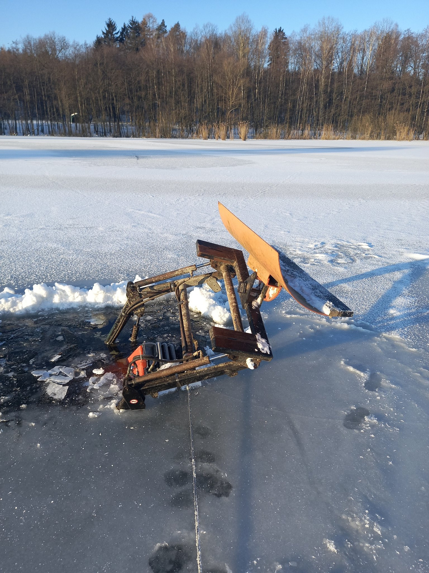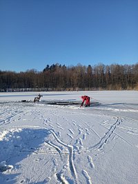 Na rybníku Spáleniště se propadl ledem traktor