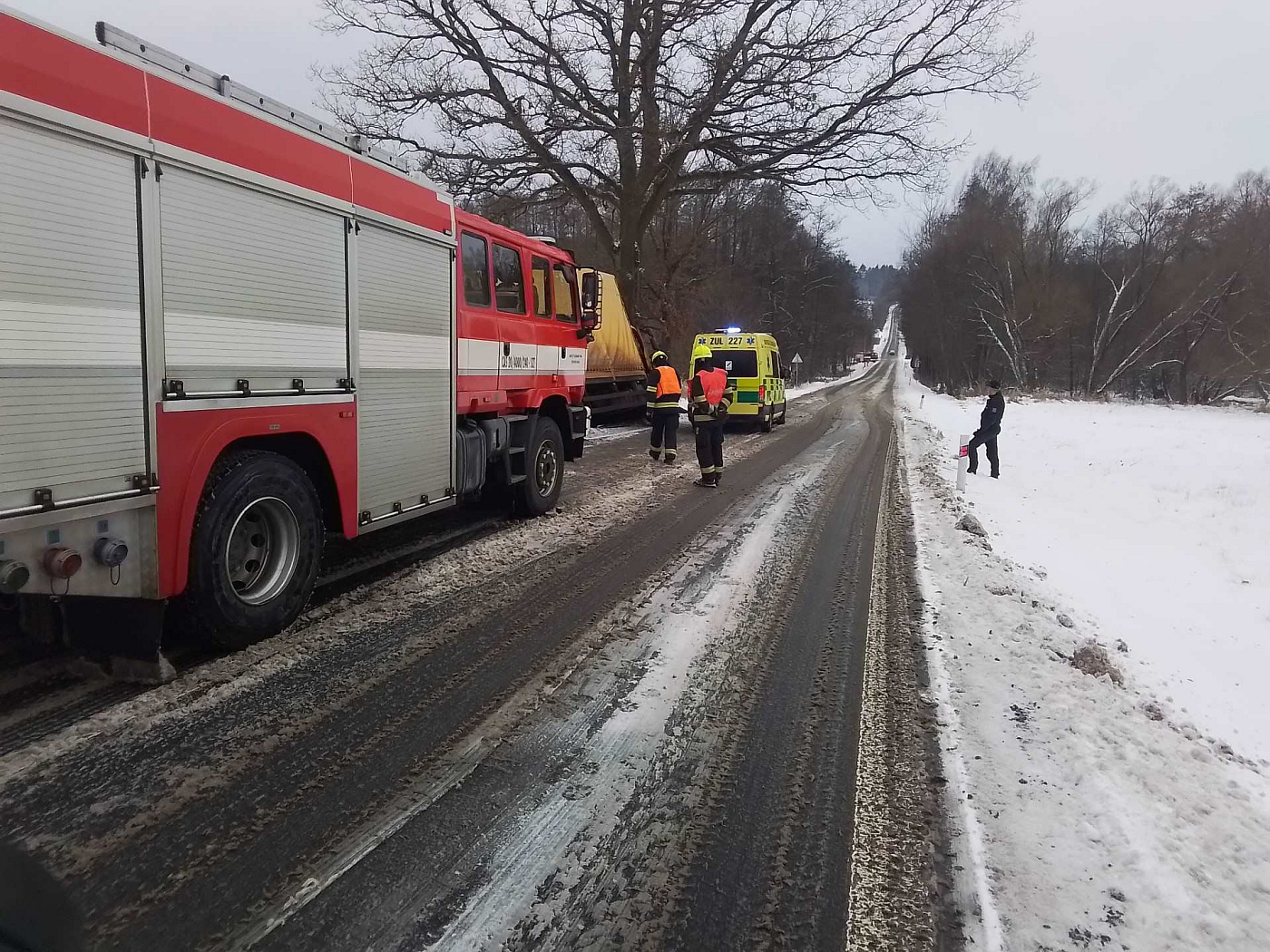 V obci Česká Kamenice na Děčínsku, v části Kerhartice, narazil kamion do stromu. Zraněného řidiče si převzala záchranná služba.