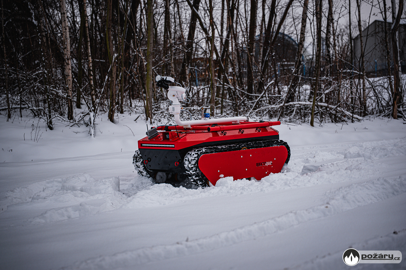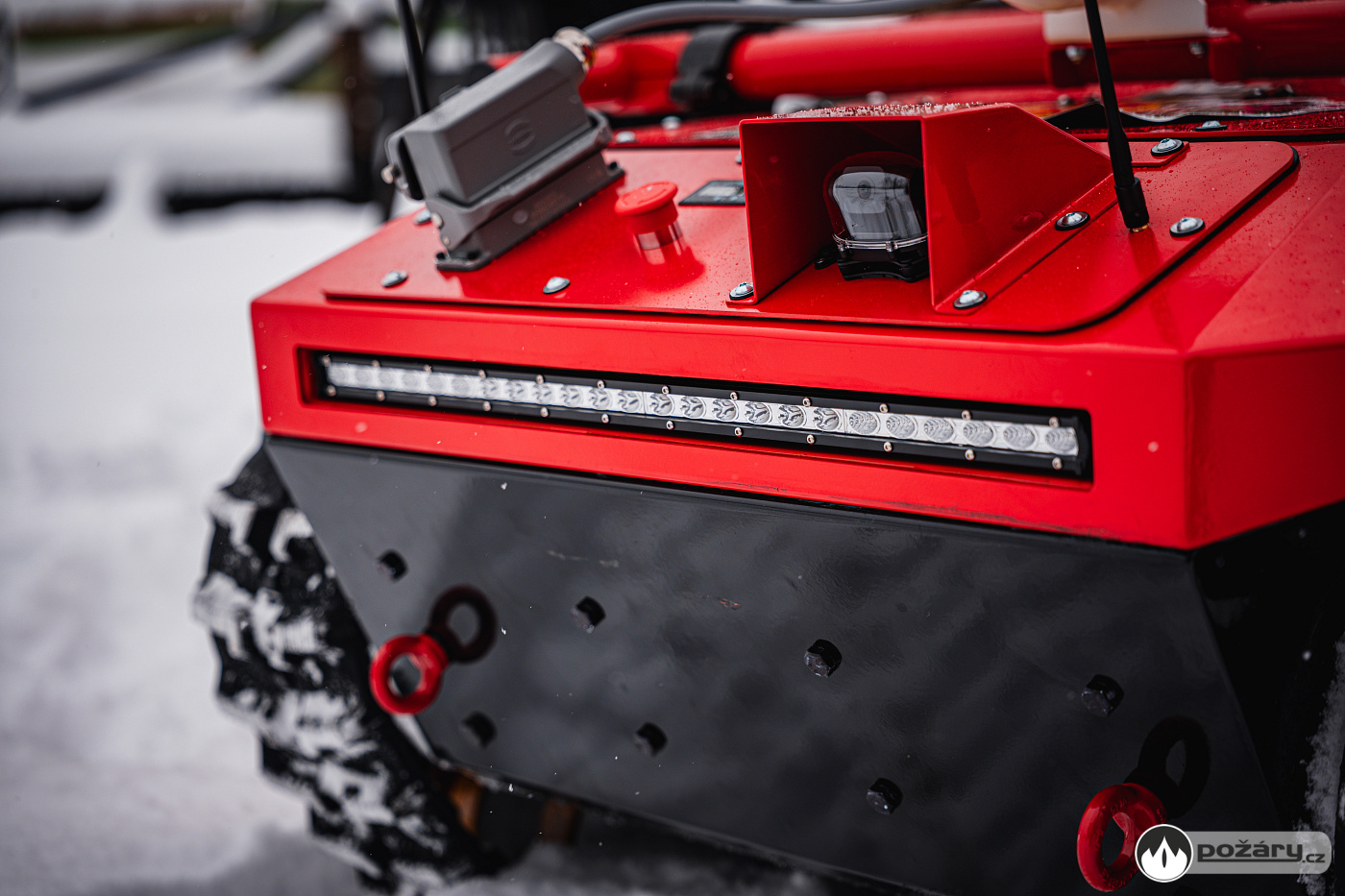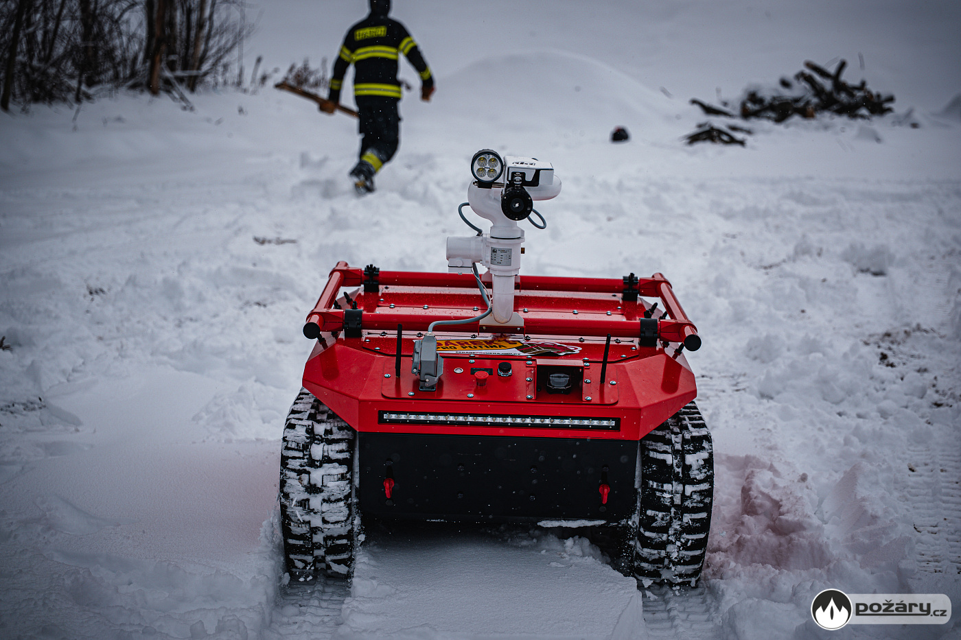 Modularita: Na univerzální podvozek lze osadit hasicí lafetu, zásobovací modul, záchranářská nosítka či monitoring s termokamerou.