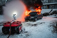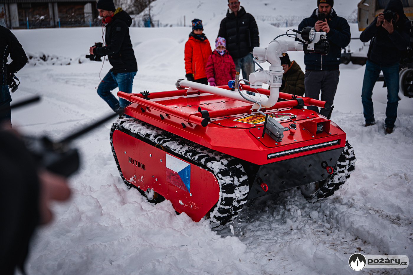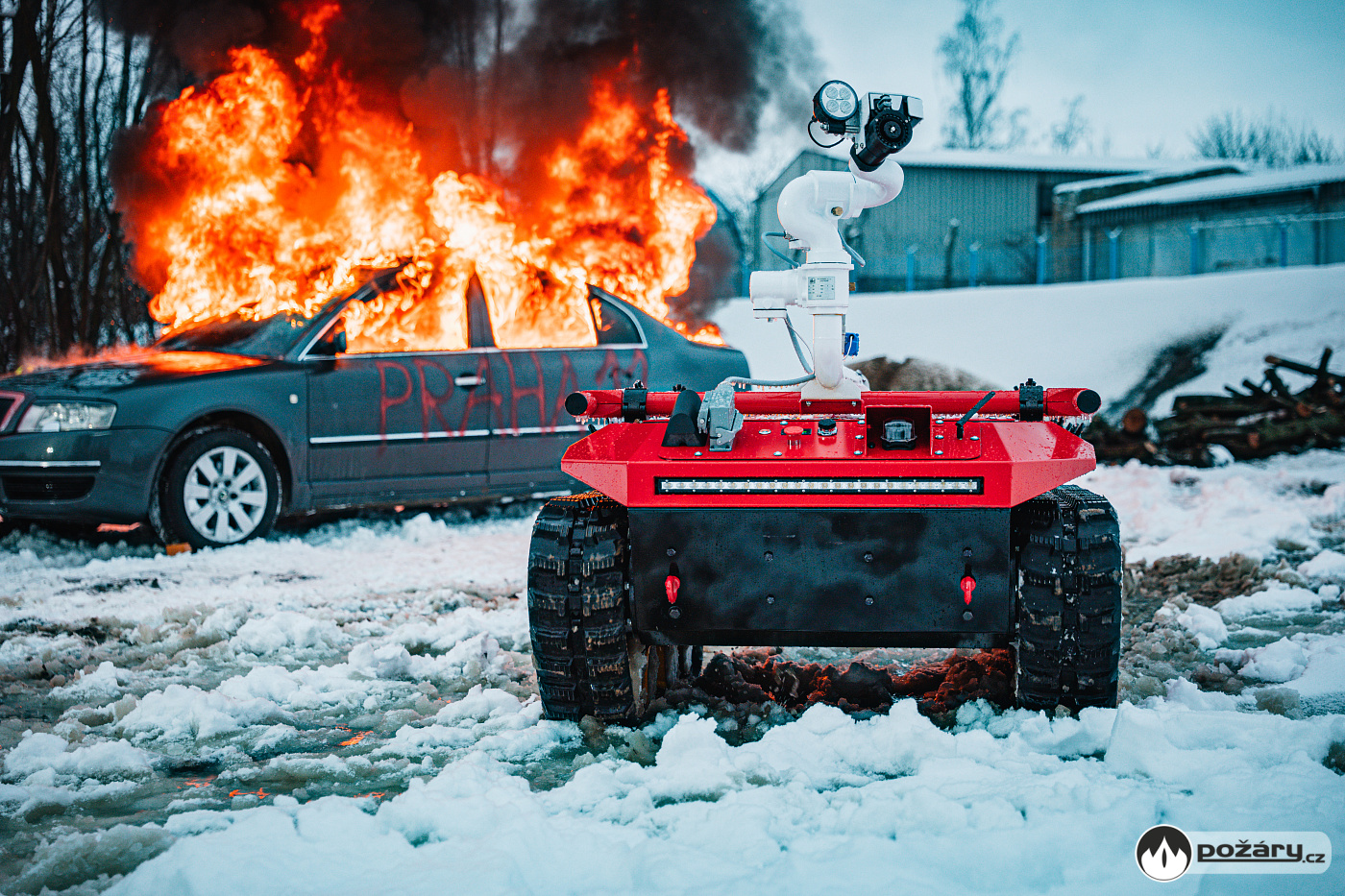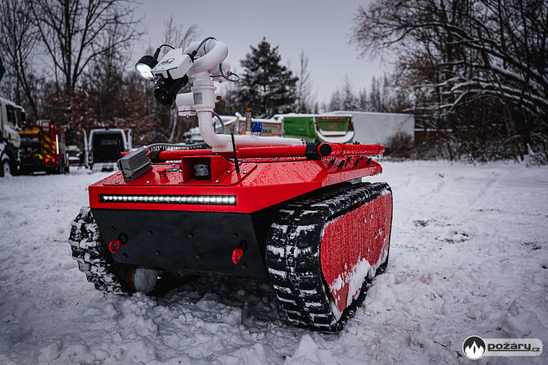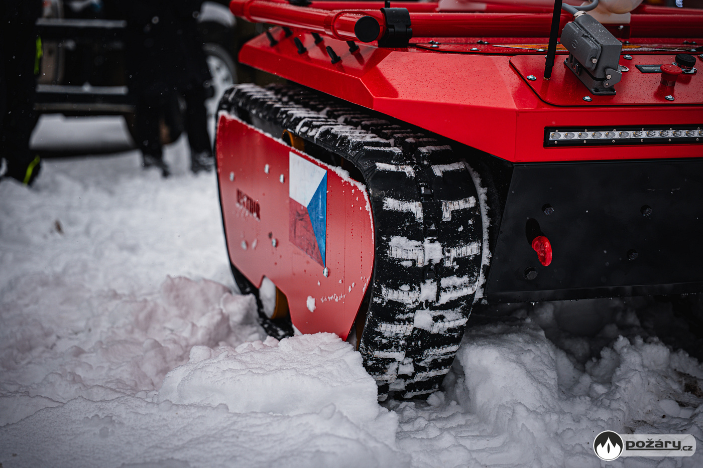 Modularita: Na univerzální podvozek lze osadit hasicí lafetu, zásobovací modul, záchranářská nosítka či monitoring s termokamerou.