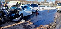 Ve 12:54 došlo k dopravní nehodě 4 aut u Mostu. Na místo vyjely 2 jednotky. Hasiči zajistili místo nehody a poskytli předlékařskou pomoc 5 zraněným. Po dobu vyšetřování byla silnice uzavřena. V 15:26 hodin byl provoz obnoven.