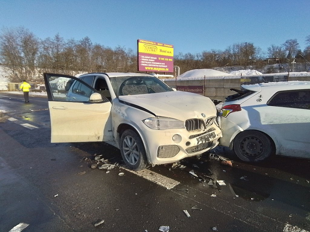 Ve 12:54 došlo k dopravní nehodě 4 aut u Mostu. Na místo vyjely 2 jednotky. Hasiči zajistili místo nehody a poskytli předlékařskou pomoc 5 zraněným. Po dobu vyšetřování byla silnice uzavřena. V 15:26 hodin byl provoz obnoven.