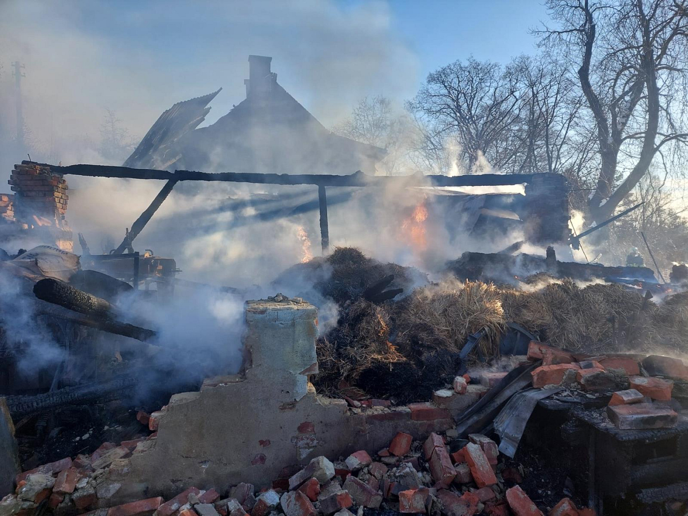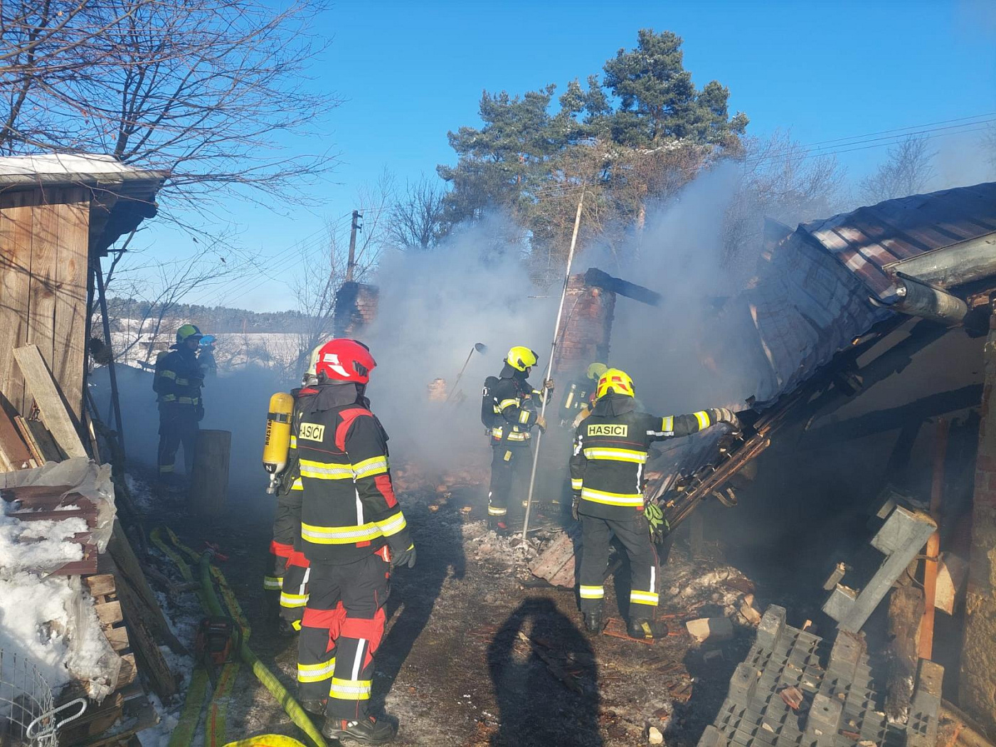 Po příjezdu první jednotky na místo hasiči provedli průzkum a zjistili, že plameny ve stodole zasažené požárem, jdou střechou ven. Ihned nasadili několik proudů C k hašení požáru, vzhledem k jeho rozsahu se ale bohužel rozšířil na rodinný dům, pár minut po půl dvanácté došlo ke zřícení střešních konstrukcí stodoly. Žádný hasič nebyl při zásahu zraněn. Rodinný dům, na který se požár postupně rozšířil (konkrétně na podkrovi), stihla zavčasu opustit jedna osoba, která byla na místě v péči Zdravotnické záchranné služby Libereckého kraje, zdravotníci ji sanitním vozem transportovali do zdravotnického zařízení.