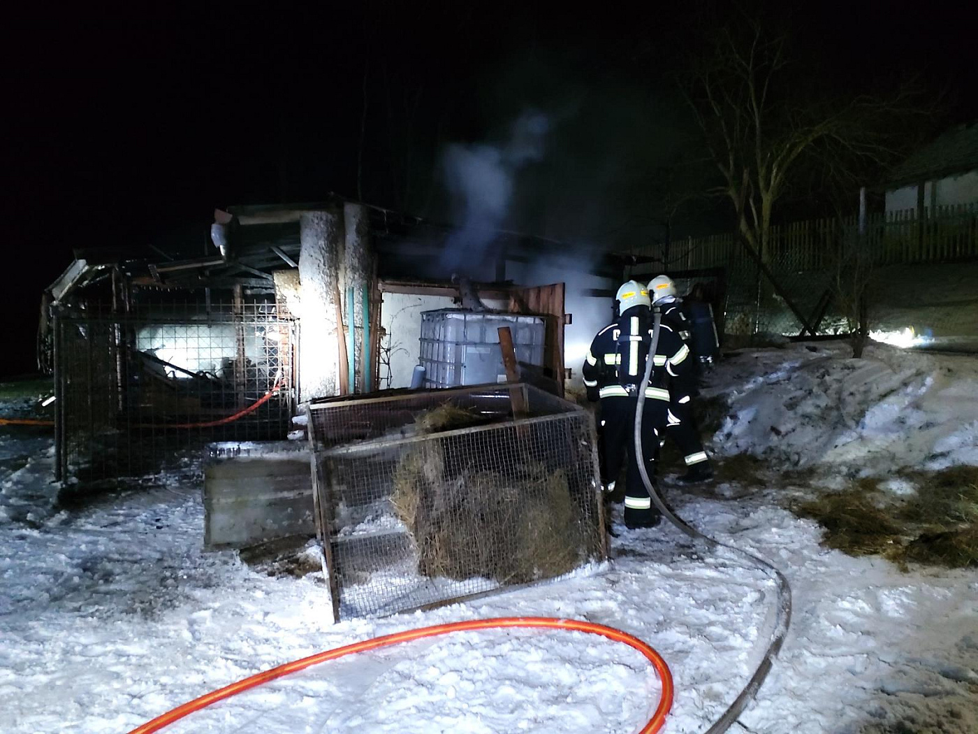 Z hořícího altánu v Boršově hasiči zachránili pět morčat a čtyři králíky