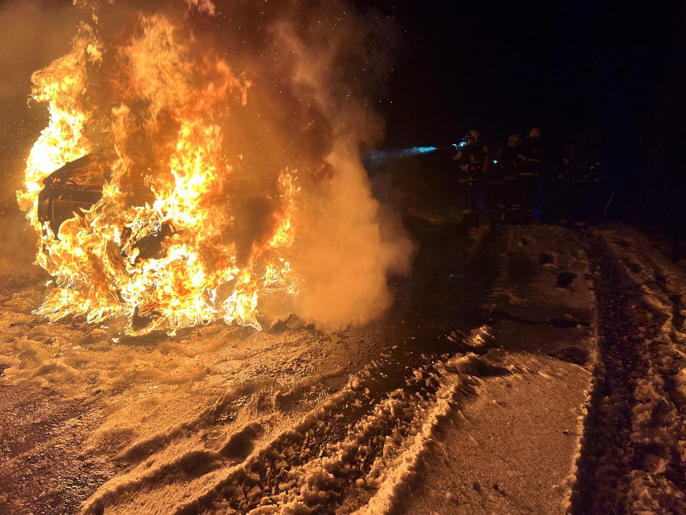 Požár osobního automobilu v plném rozsahu v obci Želízy museli zdolávat profesionální hasiči z Mělníka ve spolupráci s dobrovolnou jednotkou Želízy. Škoda byla předběžně stanovena na 100 tisíc korun a příčinou byla technická závada.