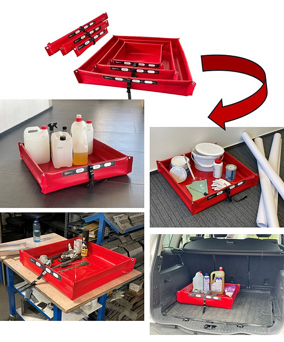 Skládací záchytná úkapová vana FASTER – ideální pro údržbové práce, skladování nebo mytí