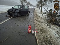 Dnes dopoledne vyjížděli hasiči z Bystřice pod Hostýnem k dopravní nehodě osobního vozidla v místní části Hlinsko pod Hostýnem. Řidič zde sjel mimo komunikaci a narazil do stromu. Náraz byl natolik silný, že se strom zlomil a vozidlo po střetu skončilo uprostřed jízdních pruhů. Z tohoto důvodu musela být komunikace dočasně obousměrně uzavřena.