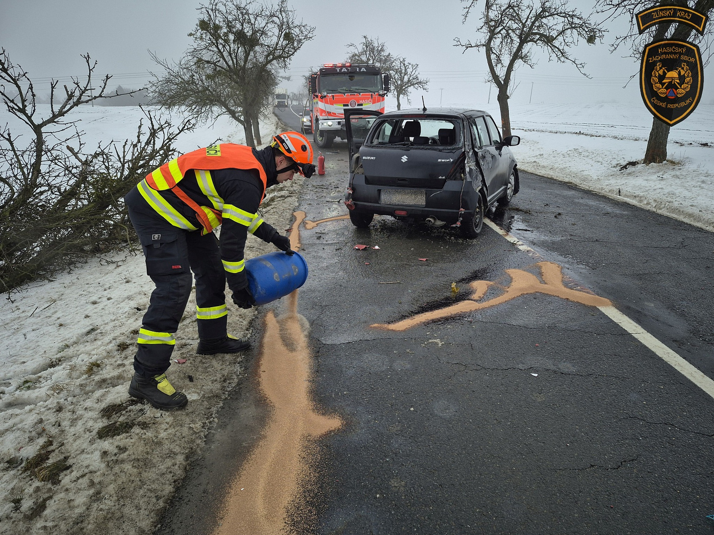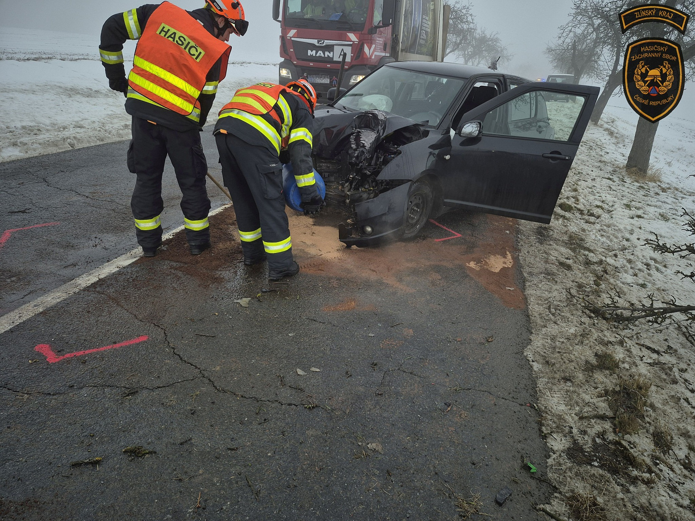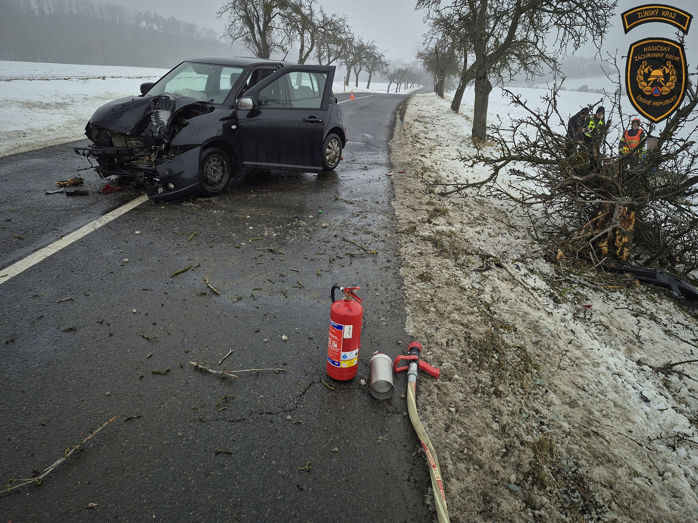 Dopravní nehoda osobního vozidla v Hlinsku pod Hostýnem zaměstnala složky IZS