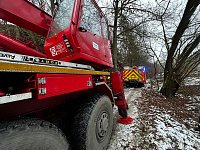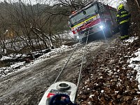 Ranní zásah u požáru kůlny v obci Stádlec na Táborsku se nepatrně protáhl. Táborští profesionální hasiči pomohli bechyňským kolegům vyprostit jejich zapadlou cisternu pomocí vyprošťovacího automobilu.