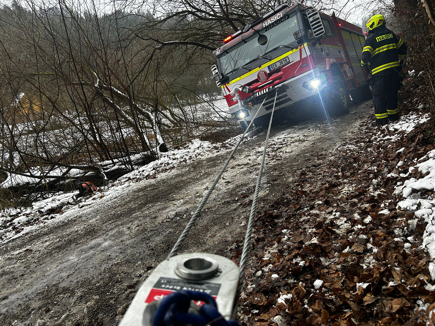 Ranní zásah u požáru kůlny v obci Stádlec na Táborsku se nepatrně protáhl. Táborští profesionální hasiči pomohli bechyňským kolegům vyprostit jejich zapadlou cisternu pomocí vyprošťovacího automobilu.