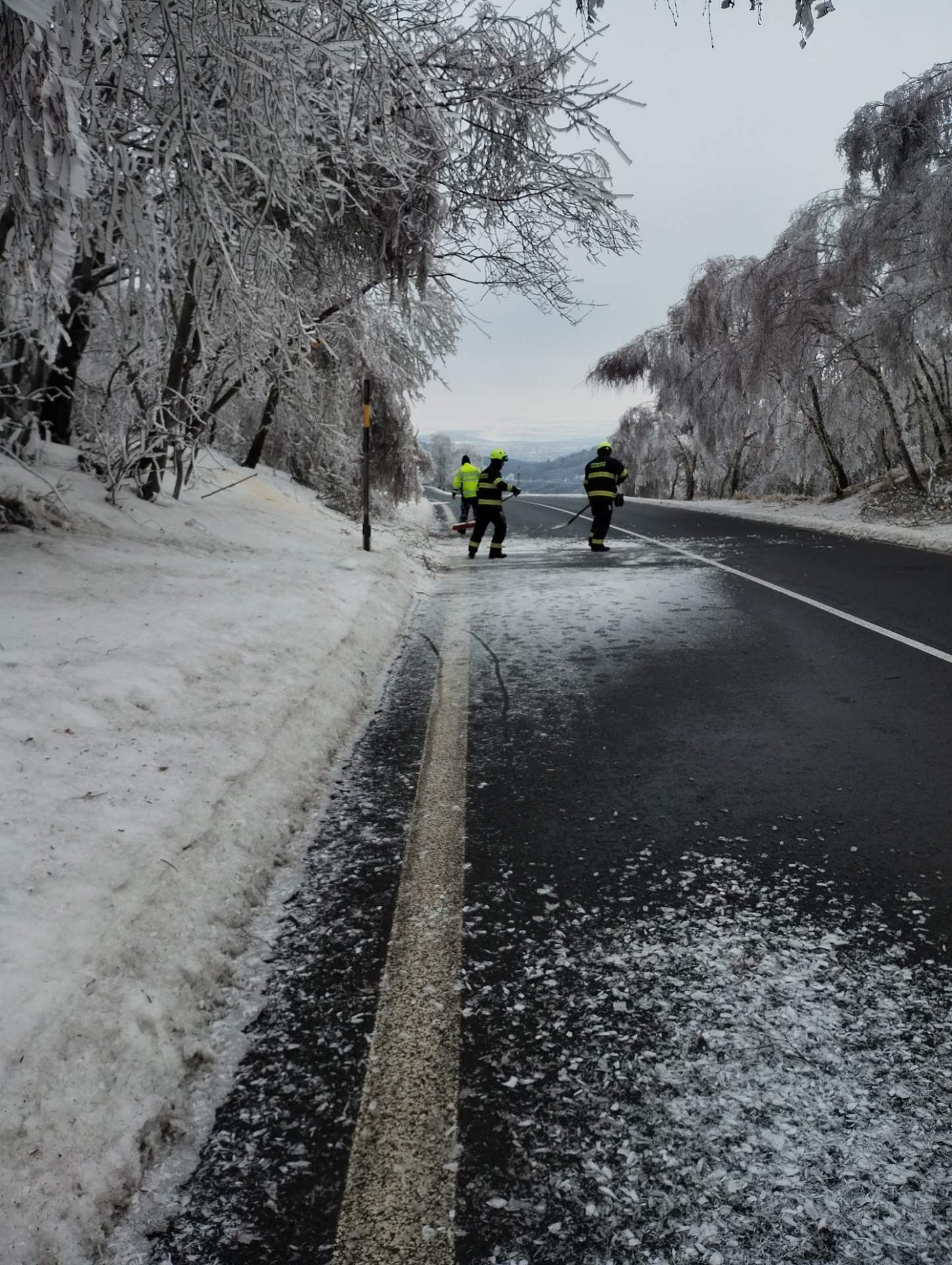 V katastru obce Křimov v místní části Strážky na Chomutovsku odstranili pomocí motorové pily hasiči strom, který hrozil pádem na komunikaci.