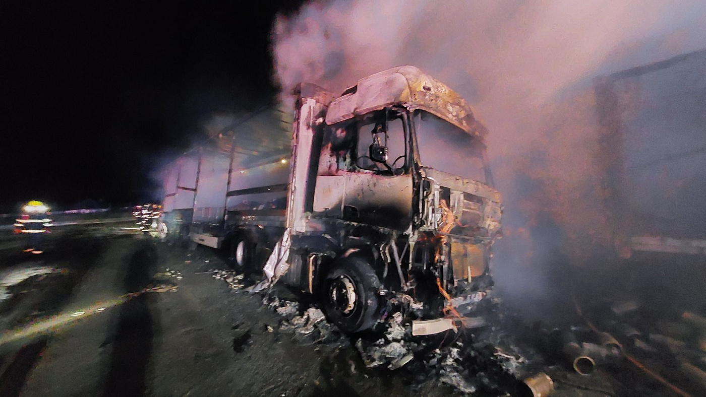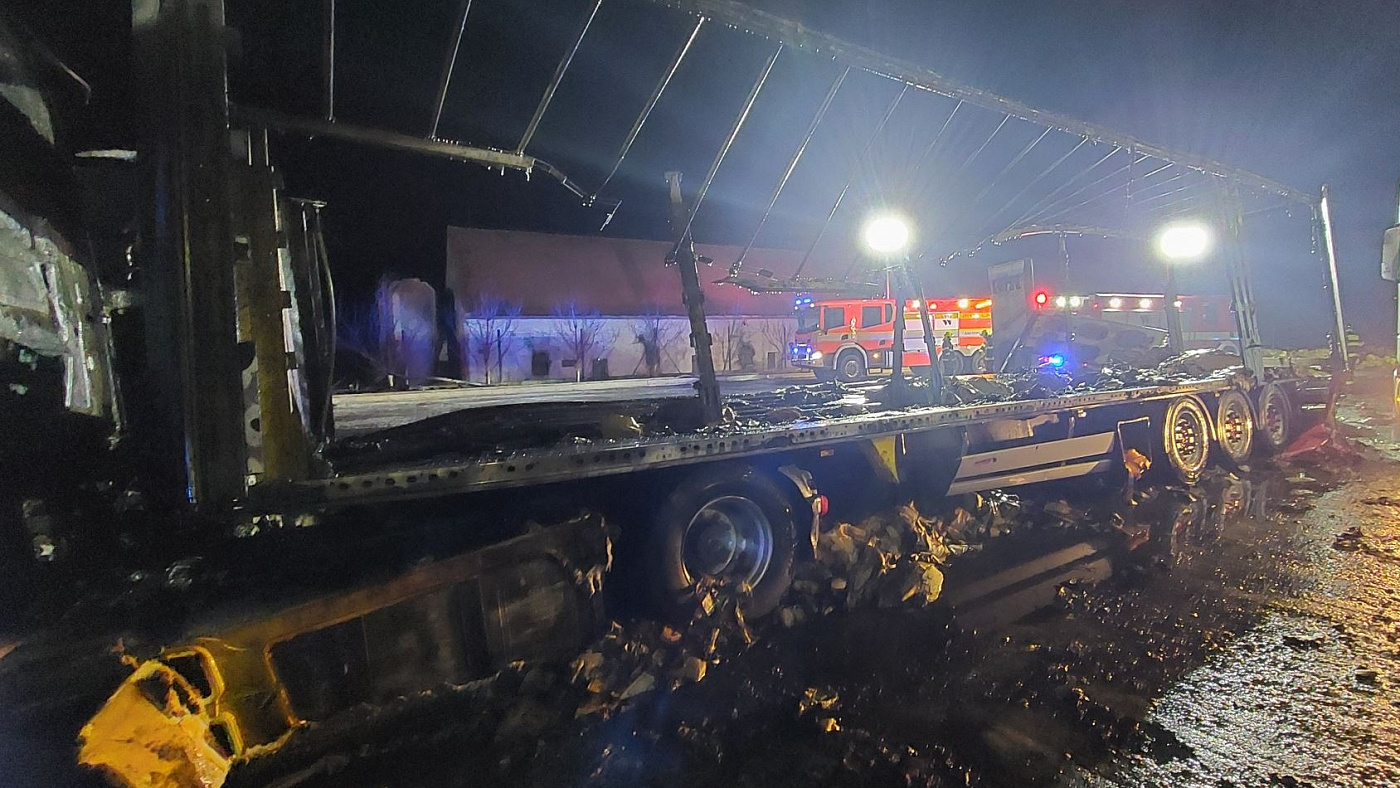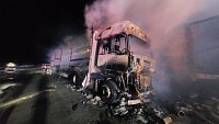 Deset jednotek hasičů zasahovalo u požáru zaparkovaných nákladních souprav v Citonicích