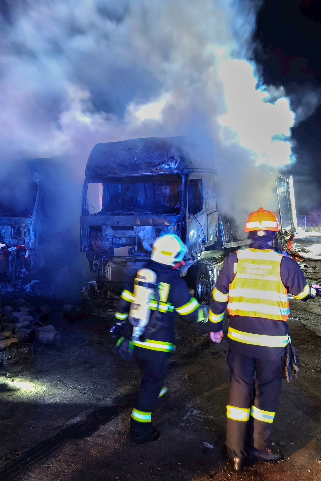 U požáru několika nákladních vozidel zasahují v obci Citonice na Znojemsku profesionální hasiči ze stanice Znojmo společně s jednotkami SDH obcí Citonice, Šumná, Chvalovice, Lesná, Suchohrdly a Vranov nad Dyjí.