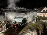 Dnes před 3:00 zasahovaly u požáru auta a přístřešku v Křenově na Českokrumlovsku profesionální jednotka z Českého Krumlova a dobrovolná jednotka Chvalšiny. Škoda se patrně vyšplhá na cca. 400 000,– Kč, příčina požáru je v šetření.