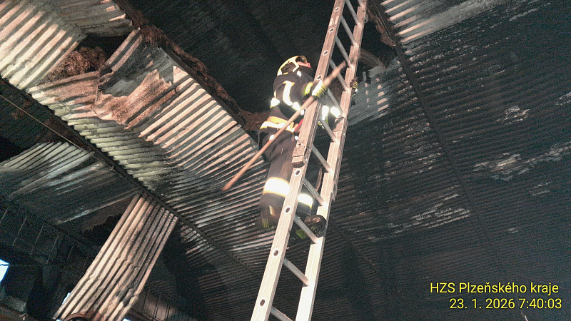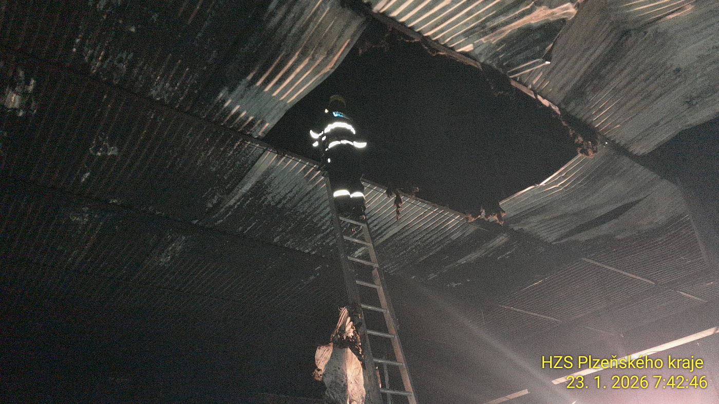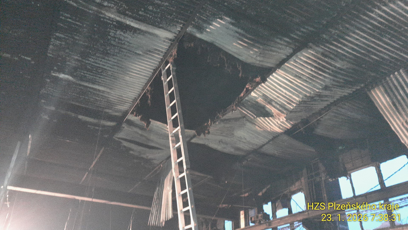 K požáru izolace střechy v zemědělském objektu v obci Kokašice vyjely jednotky z II. stupně požárního poplachu