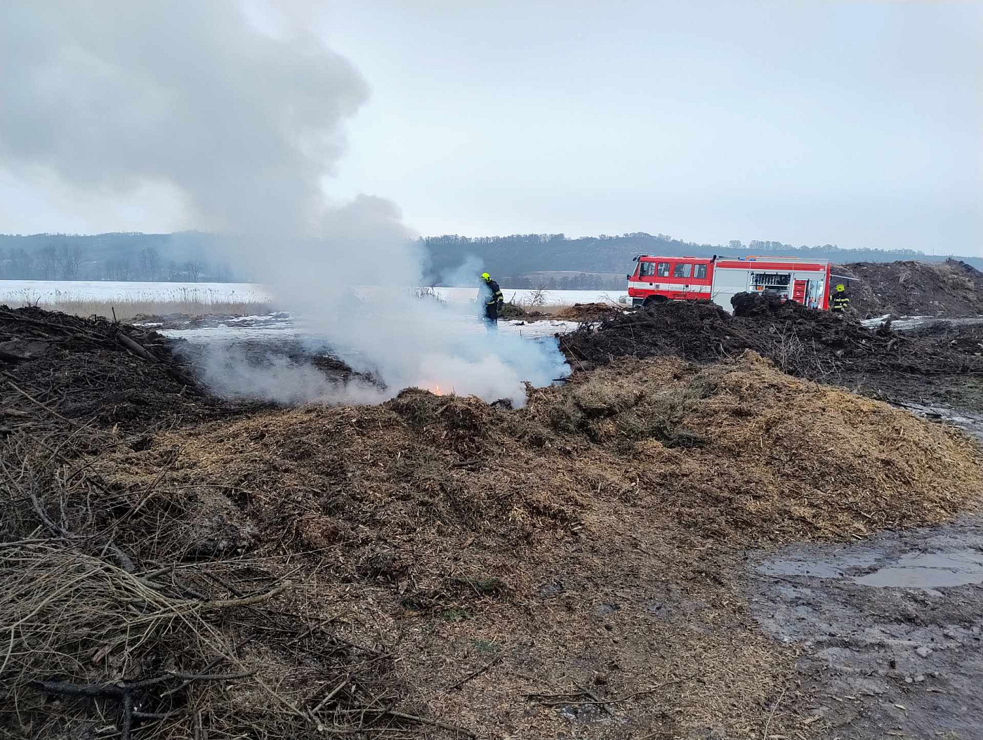 Tři jednotky hasičů vyjely k požáru štěpky a klestí v Novém Sedle na Lounsku. HZS Ústeckého kraje Sdílet