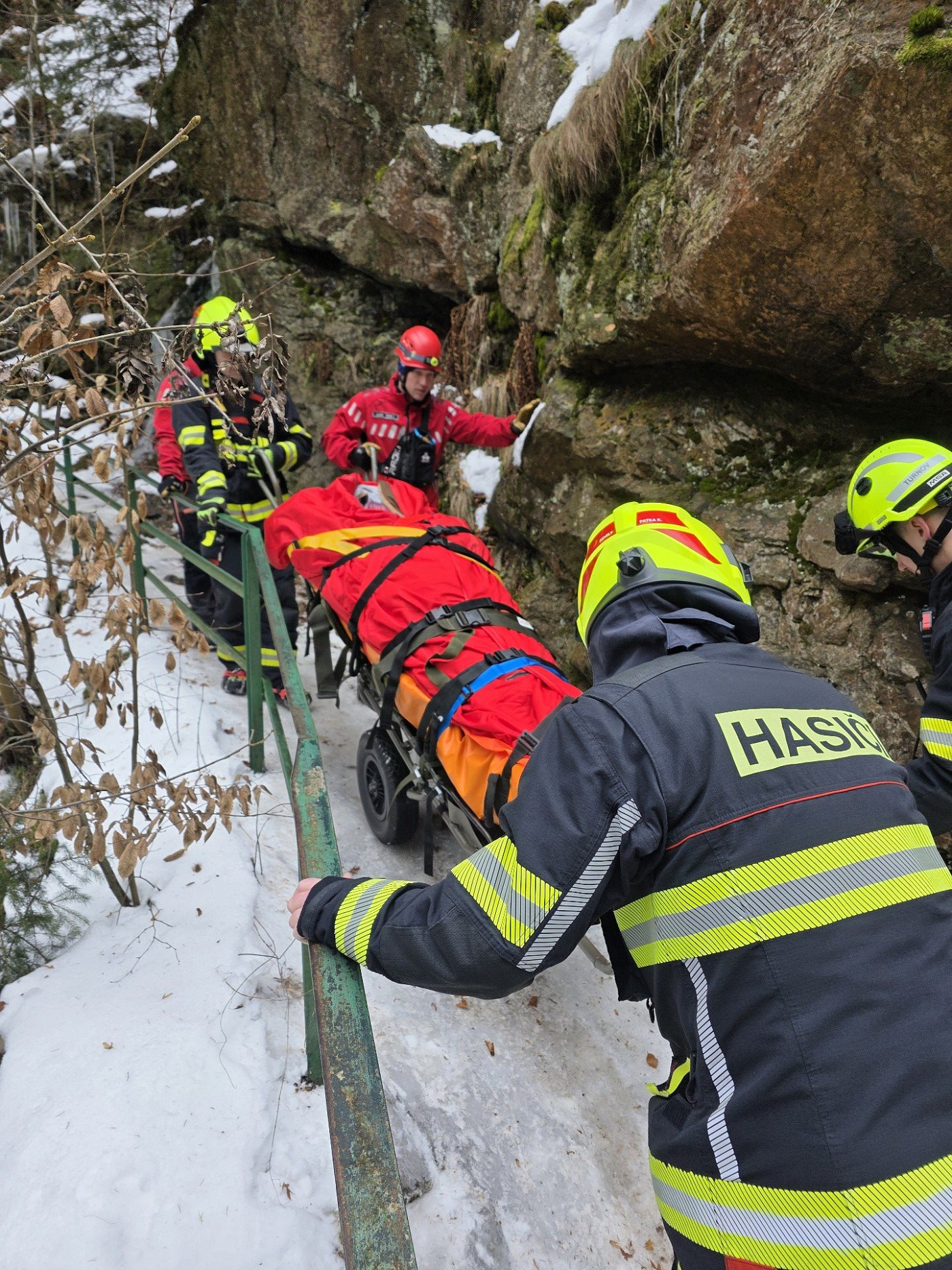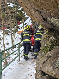 Dnes po půl dvanácté byli hasiči ze Semil vysláni k záchraně zraněné osoby po pádu v nepřístupném terénu na Riegrově stezce. Osobě poskytli první pomoc, zajistili tepelný komfort a pomocí nosítek osobu rychle a bezpečně přemístili na začátek stezky do vozu zdravotnické záchranné služby.