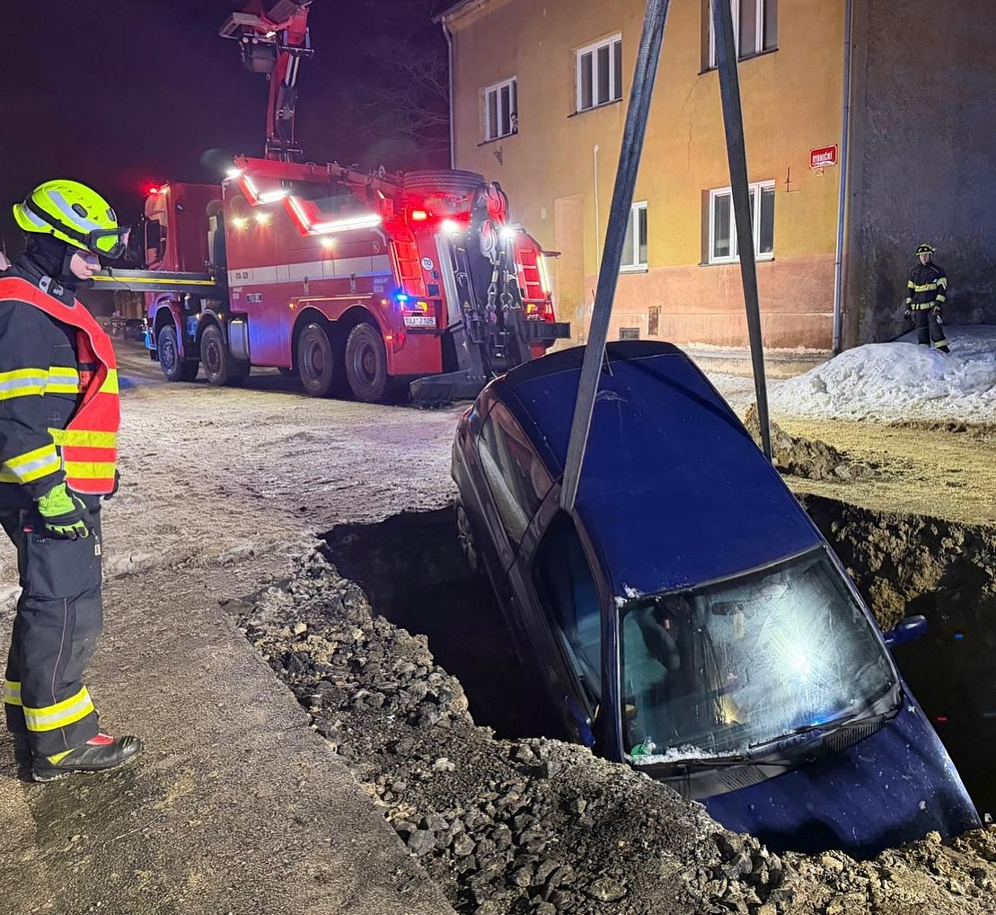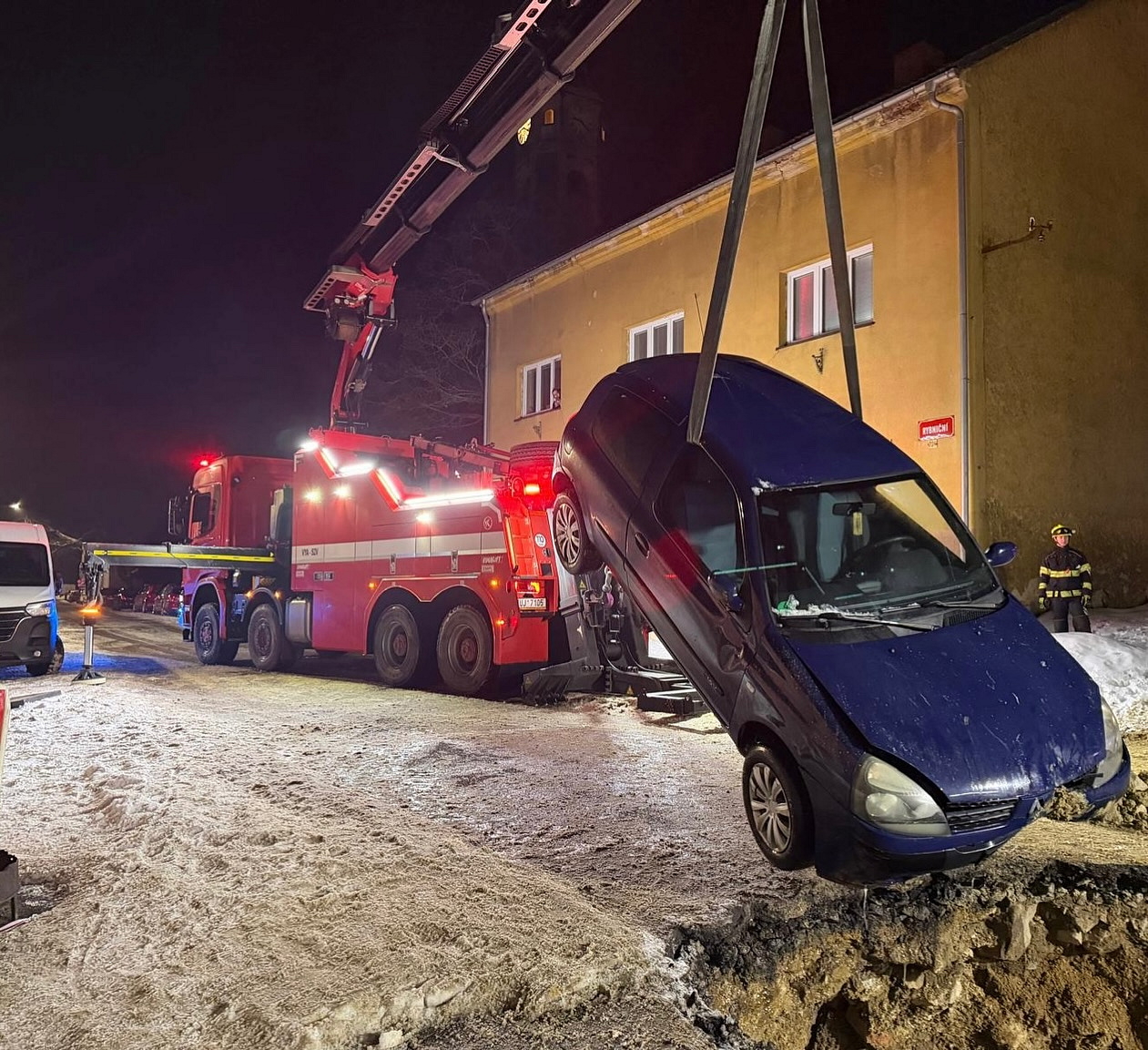 Do obce Hrob na Teplicku do Rybniční ulice vyjely před dvacátou hodnou složky IZS k ohlášené dopravní nehodě osobního vozidla, které sjelo do výkopu. Událost byla ohlášena s nutností vyproštění osob.