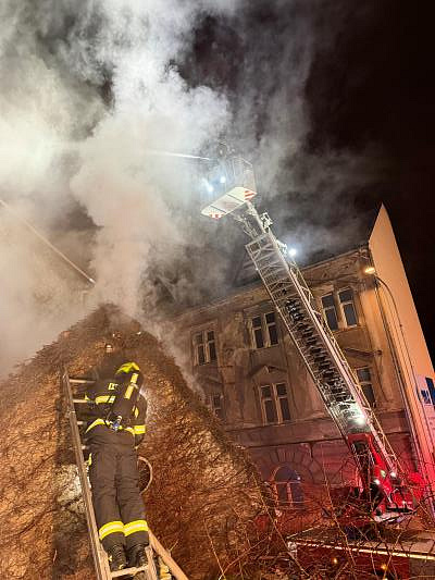 Hasiči tak museli evakuovat 34 osob z vedlejší budovy. Na místě je i evakuační autobus.