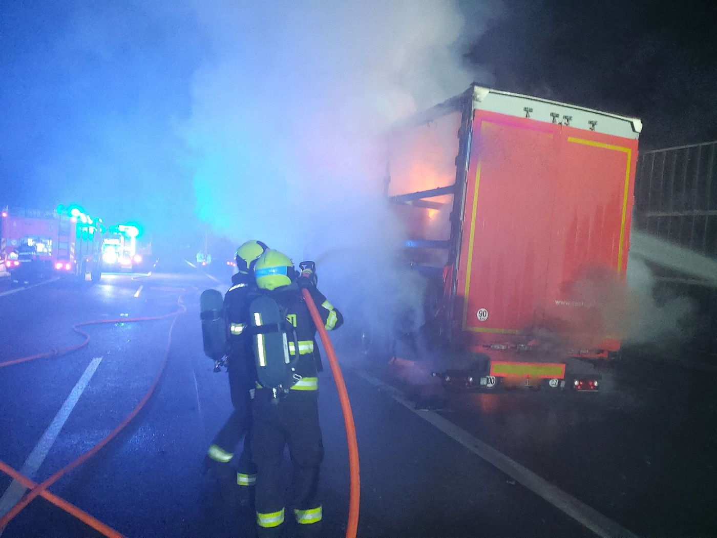 Jednotky hasičů z celkem sedmi stanic zlikvidovaly požár nákladního automobilu na 185,5 kilometru dálnice D1 směr Ostrava. Operační středisko na místo vyslalo profesionály z brněnských stanic Lidická, BVV, Starý Lískovec, Rosice, Přehrada a profesionální jednotky z Ivančic a Židlochovic.