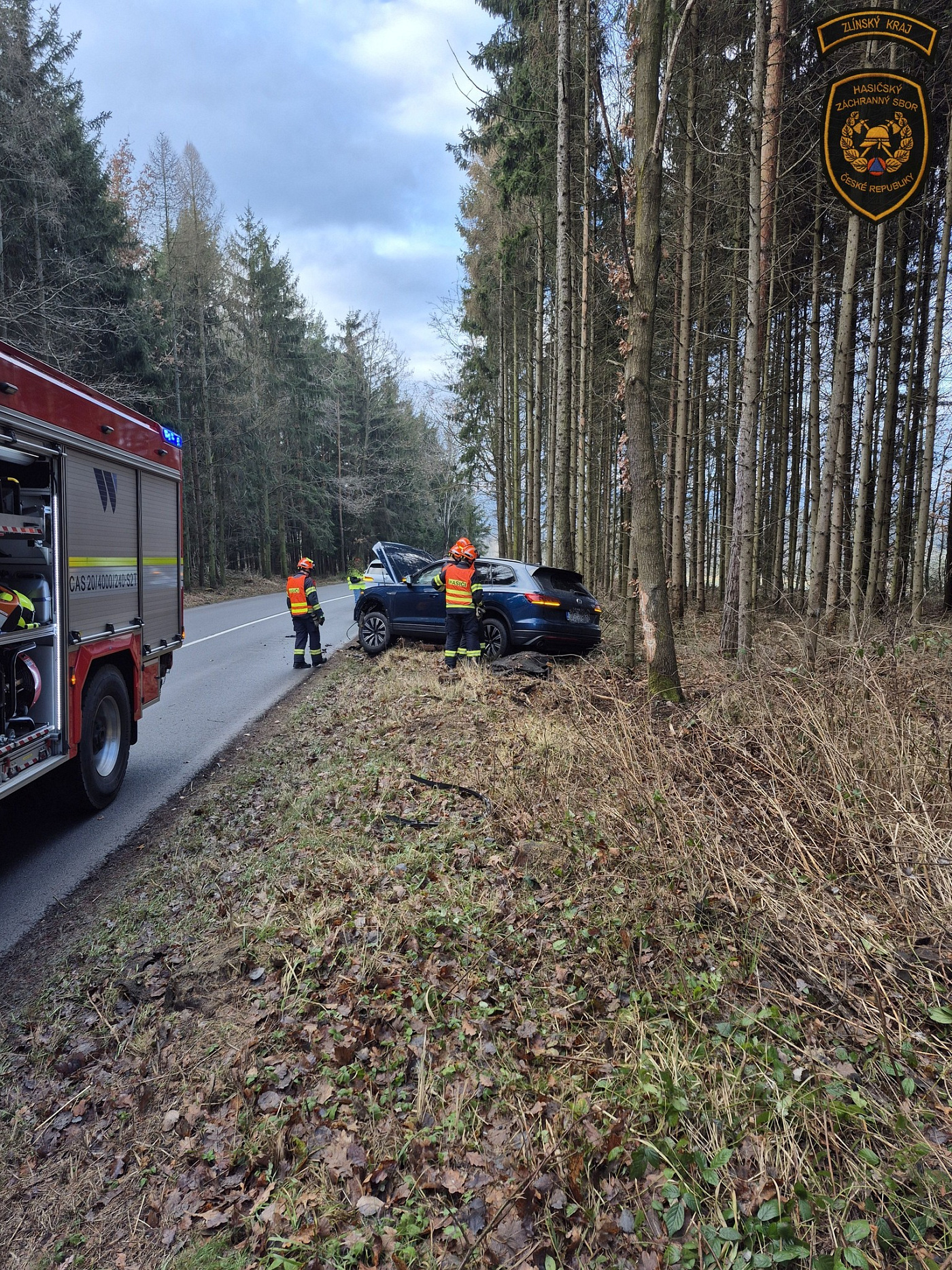 Profesionální hasiči ze Zlína vysláni k dopravní nehodě osobního vozidla u obce Ostrata ve směru na Hrobice. Vozidlo zde sjelo ze silnice a narazilo do vzrostlého stromu. Nehodu na tísňovou linku automaticky oznámil systém eCall. Po příjezdu na místo události hasiči potvrdili, že se jedná o nehodu jednoho vozidla.