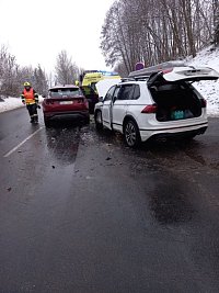 Ve Vrchlabí na Trutnovsku zasahují u dopravní nehody dvou osobních vozidel se zraněním profesionální hasiči ze stanic Jilemnice a Vrchlabí.