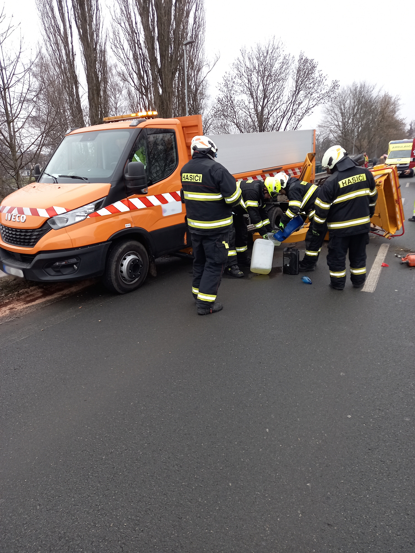 Hasiči zachytávali naftu unikající z dodávky a pomocí sorbentu asanovali zasaženou komunikaci. Jedna osoba byla při nehodě zraněna.