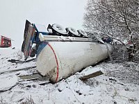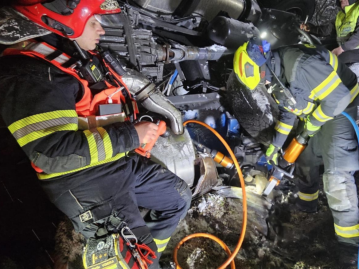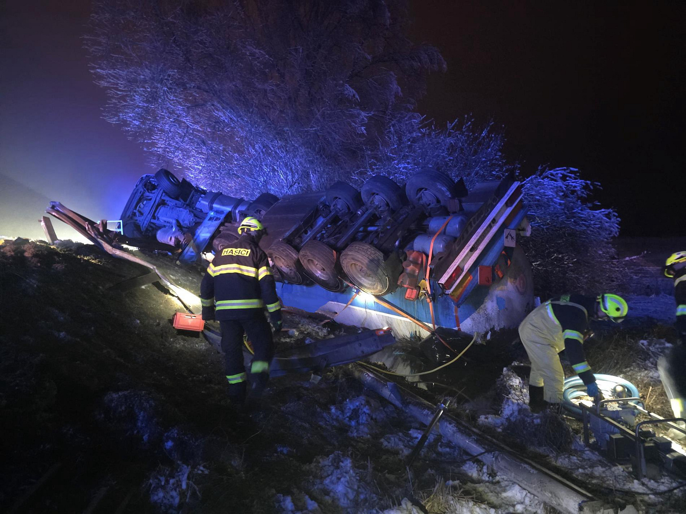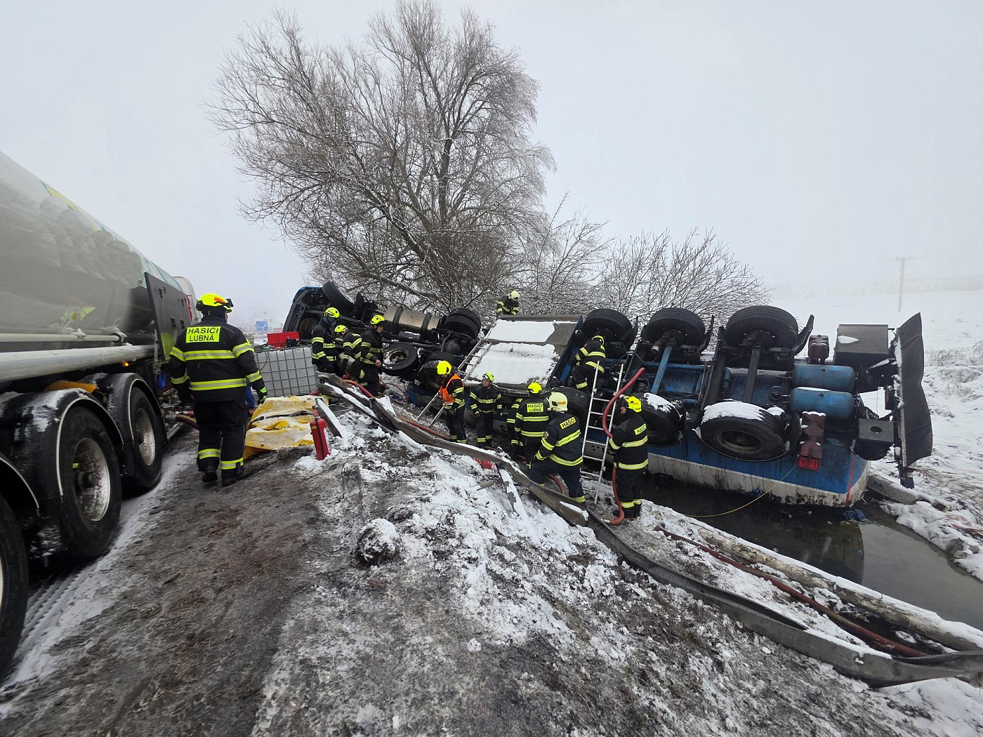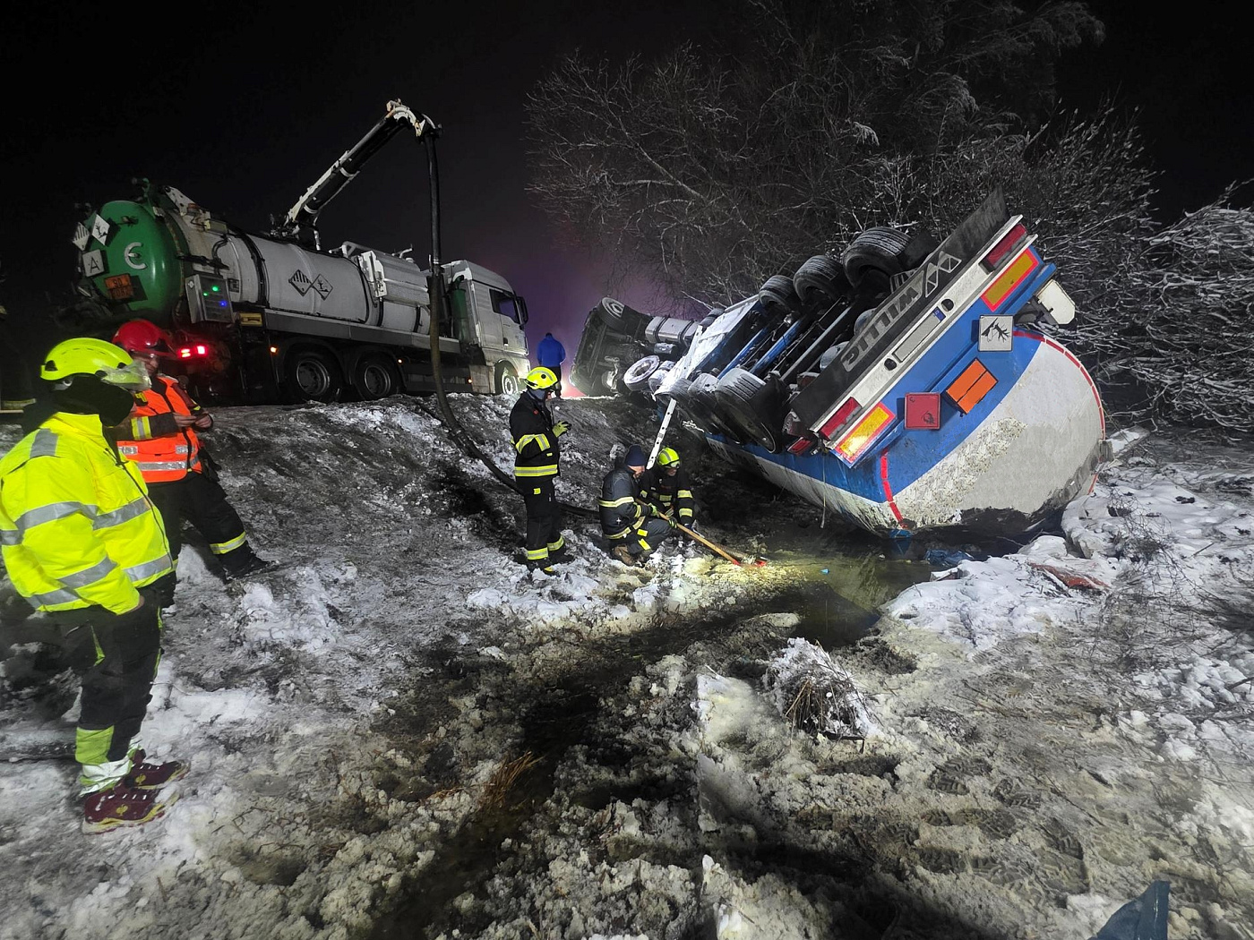 Od nočních hodin zasahují hasiči nedaleko obce Žďár na Rakovnicku, kde došlo k převržení pětikomorové cisterny převážející naftu a benzín. Řidiče z vozidla vyprostili a předali ho do péče zdravotnické záchranné služby.
