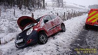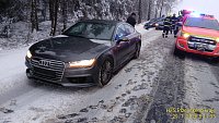 Na silnici 193/II na úrovni Třebnice havarovala čtyři osobní auta. Jedno z nich je částečně na boku. Jedna osoba je v péči záchranářů.