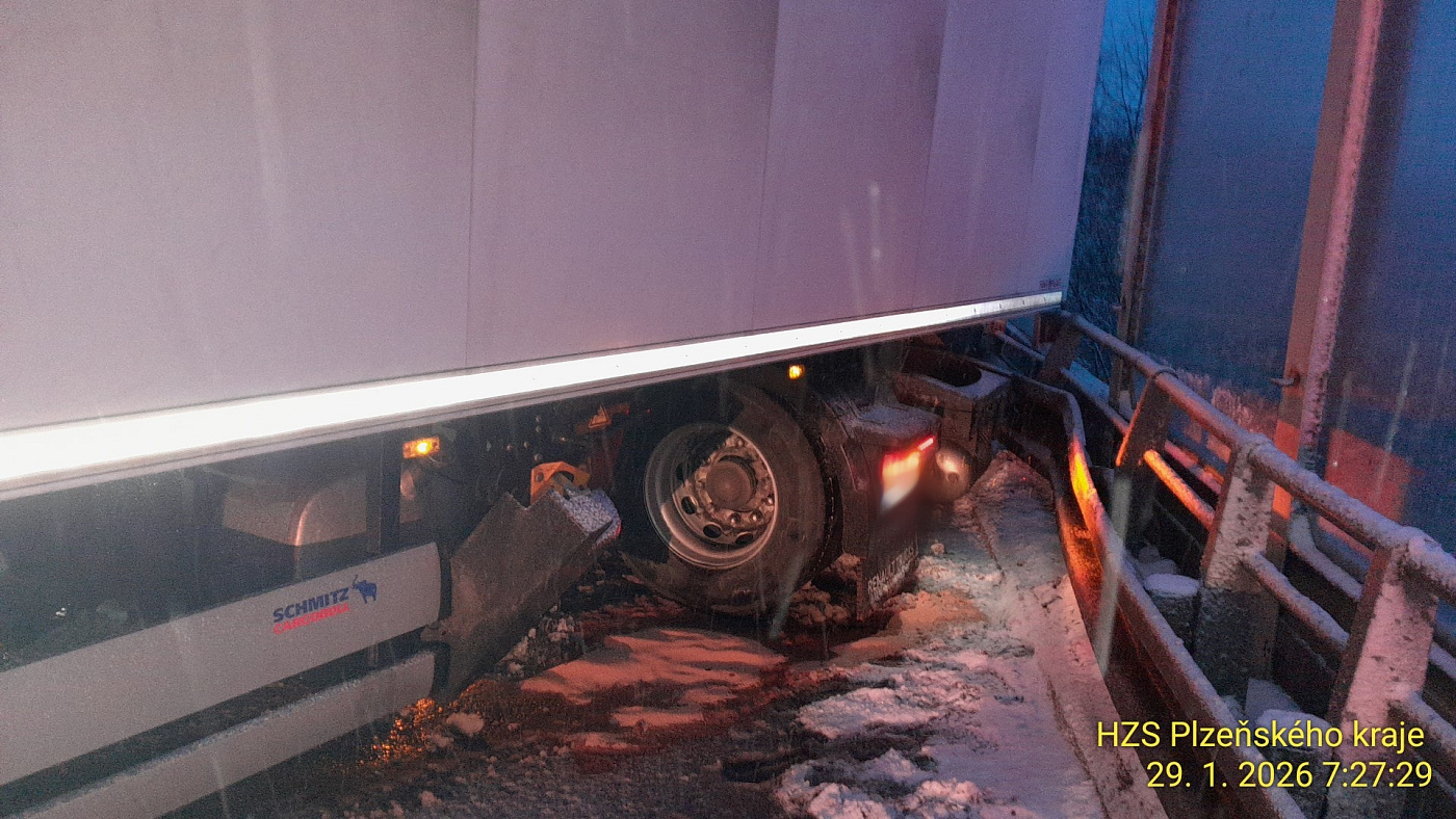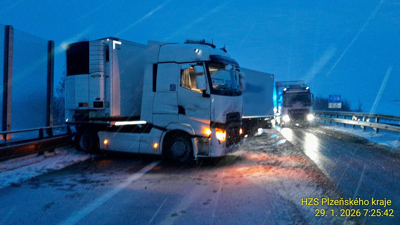 Na 124. km dálnice D5 směr Rozvadov zasahují hasiči u nehody kamionu. Dochází k úniku nafty, který zachytávají. Dojezd na místo komplikovala meteosituace. Nehoda je bez zranění.