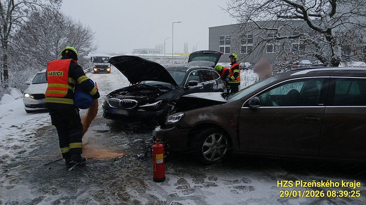 Na kraji Vejprnic ve směru od silnice 26/I se střetla dvě osobní auta. Komunikace je neprůjezdná.