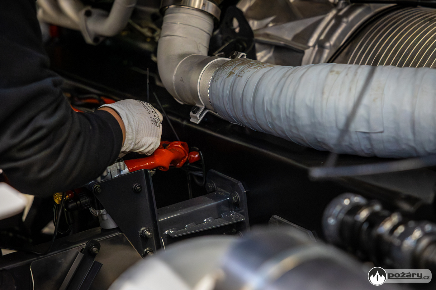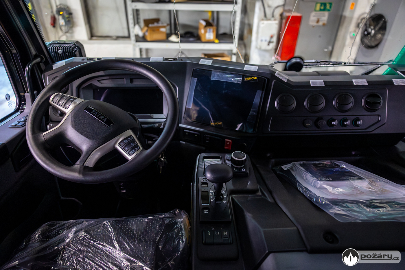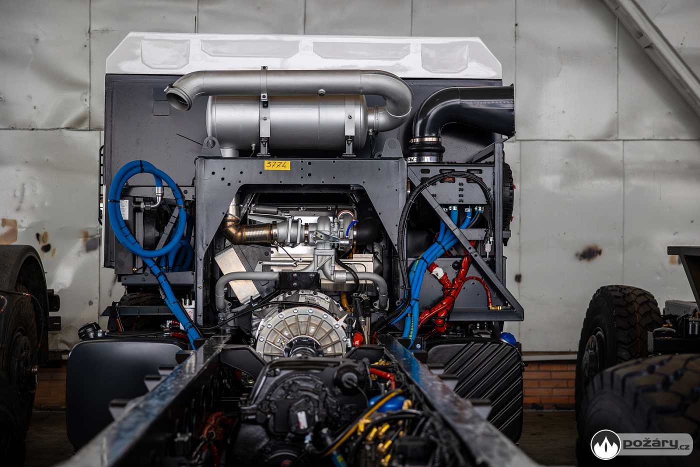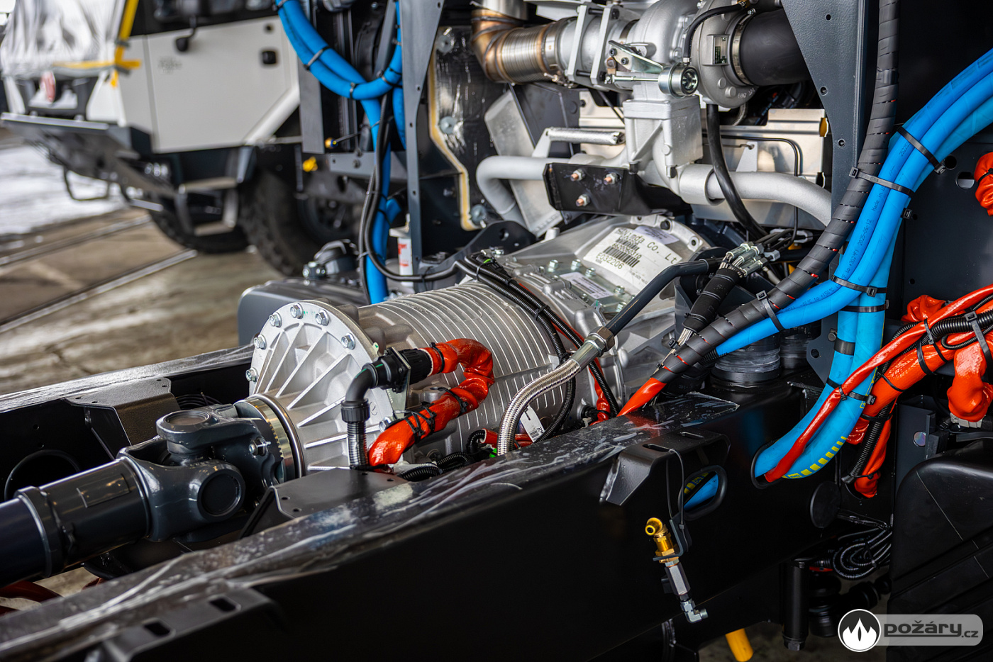 Jakmile je hnací ústrojí na svém místě, přichází na řadu montáž kabiny a následné oživení celého vozu. V kabině se už v Kopřivnici připravuje „hasičská“ elektroinstalace – pro světelné výstražné zařízení, pro osvětlení zadní řady sedadel a další.